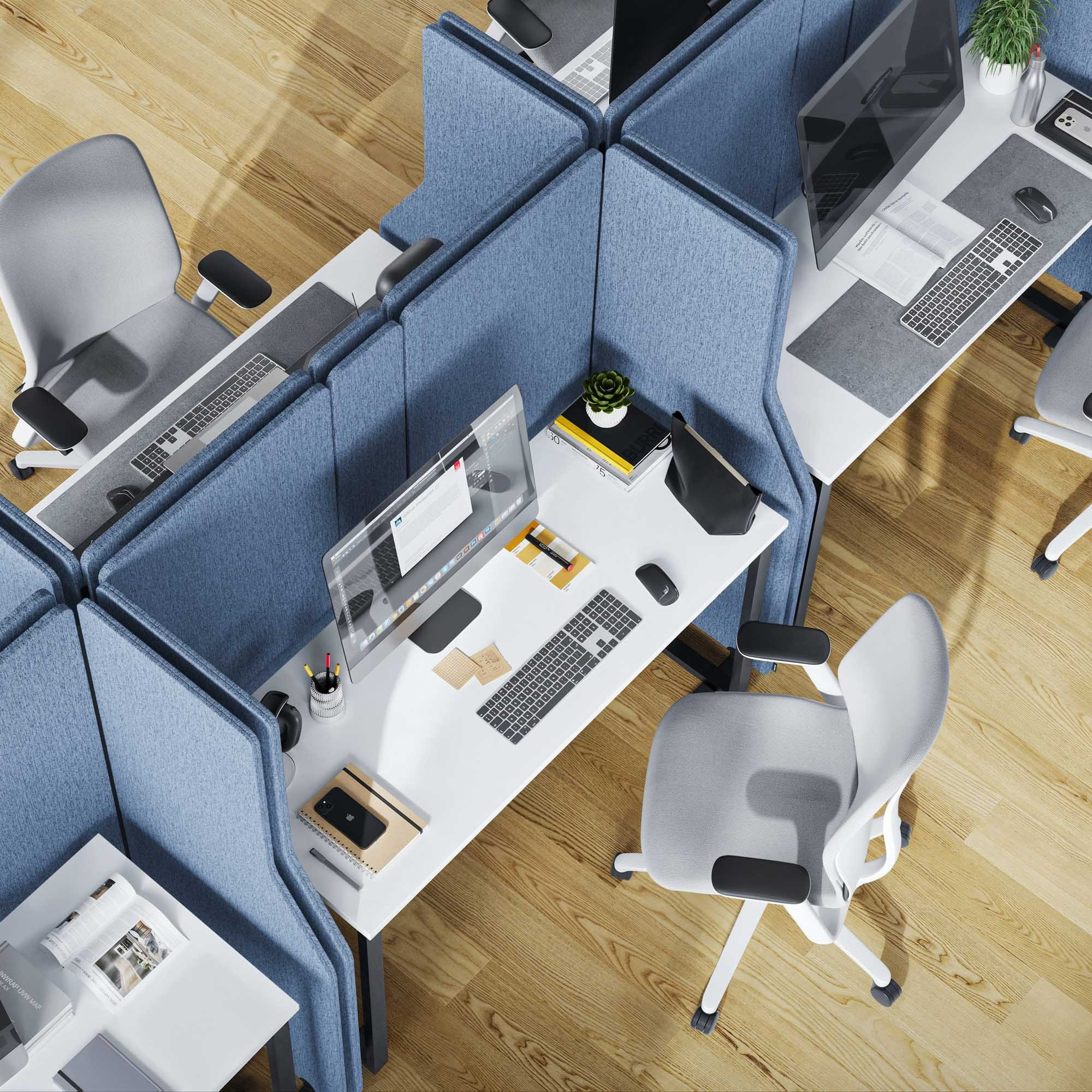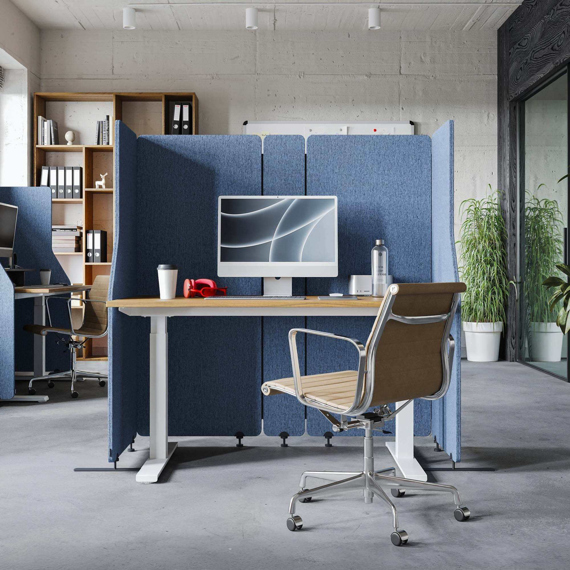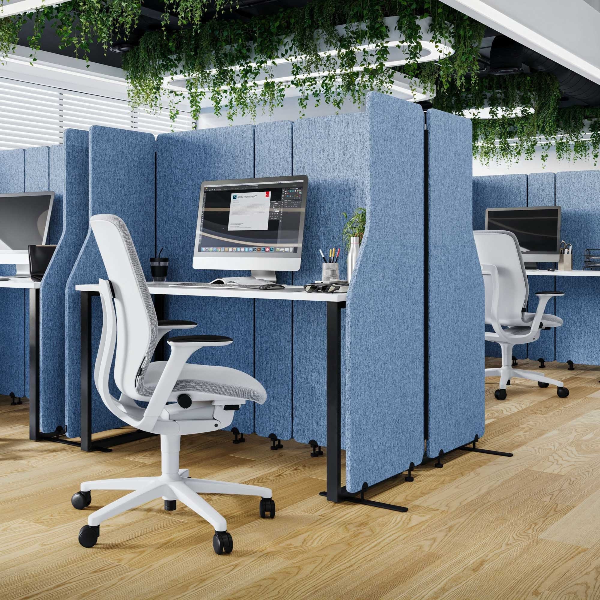 Akustická stena SADIE je navrhnutá tak, aby sa prispôsobila vašim potrebám. Je vhodná pre stoly o šírke 140 cm a pre open space systémy. Môžete ju ľahko premiestniť a vytvoriť tak tiché zóny tam, kde je to najviac potrebné.