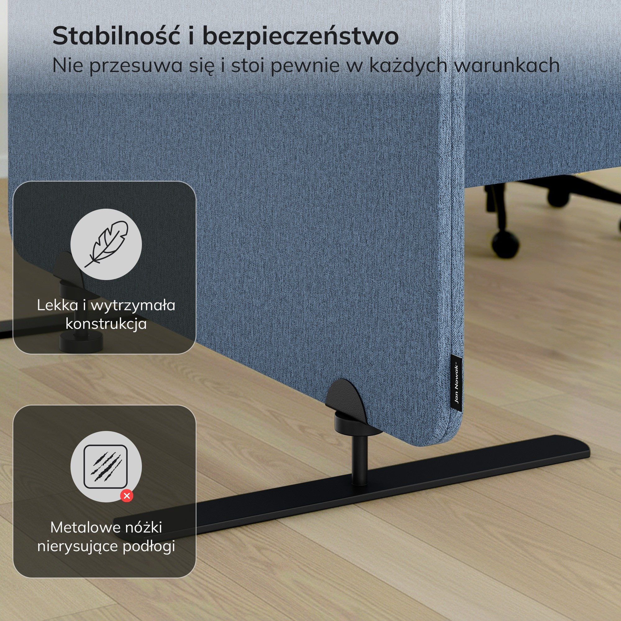 Akustická stena SADIE je postavená na pevných kovových nožičkách, ktoré zabezpečujú stabilitu a zabraňujú náhodnému posunutiu. Môžete sa tak spoľahnúť na to, že stena bude pevne stáť na svojom mieste aj v rušnom kancelárskom prostredí.