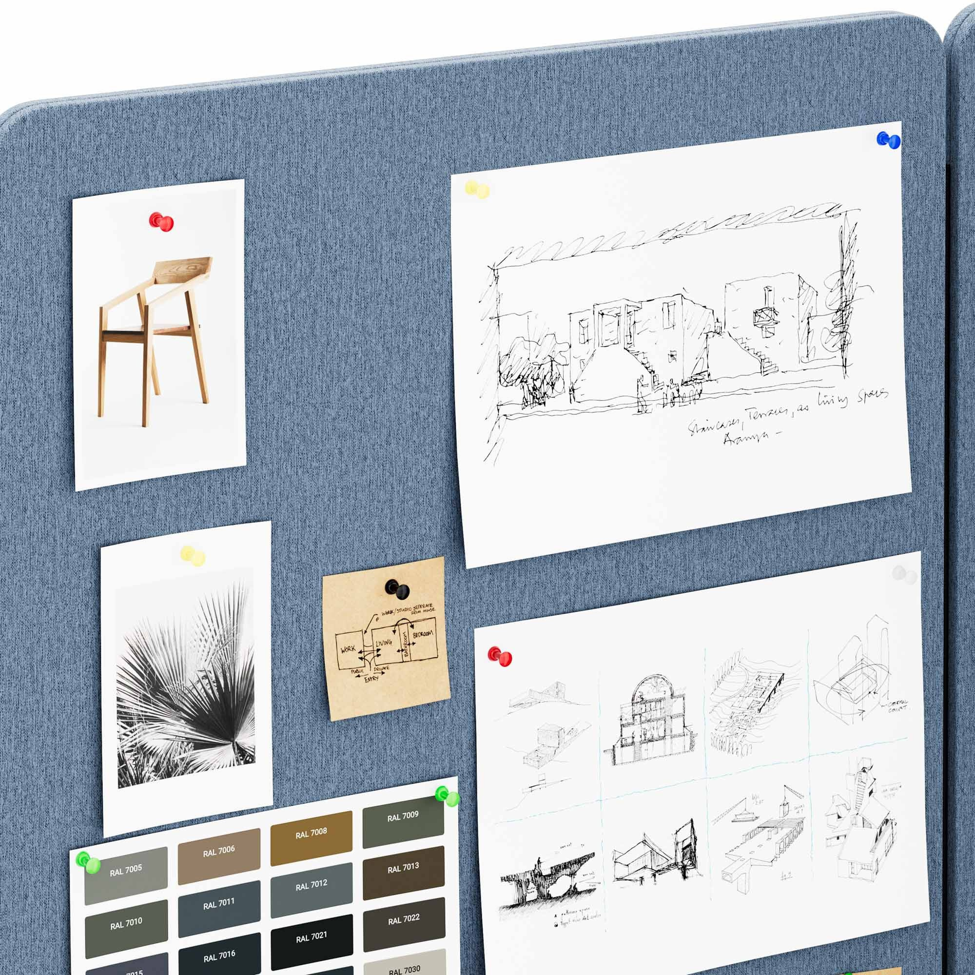 Povrch panelov akustickej steny SADIE môžete využiť ako organizačnú tabuľu pre dôležité poznámky, úlohy a pripomienky. Majte všetko dôležité na očiach a zefektívnite svoju prácu.