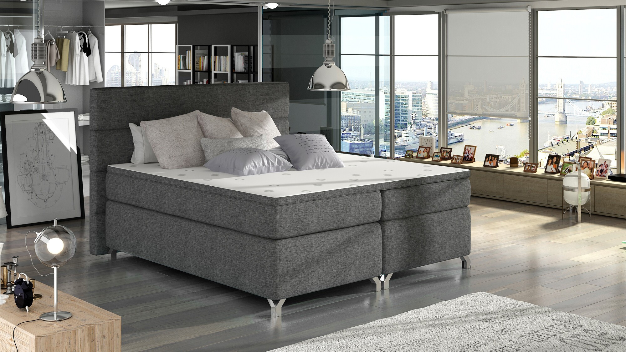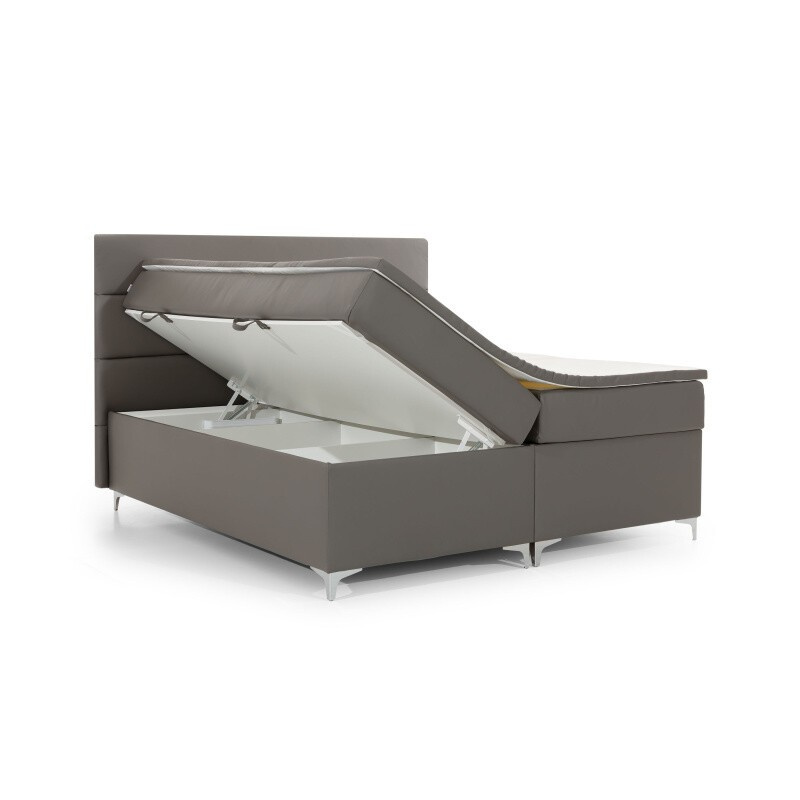 Amadeo je mimoriadne pohodlná, robustná a originálne navrhnutá boxspringová posteľ, ktorá zaujme svojím neobvyklým tvarom a ďalšími ozdobami. Je k dispozícii v troch variantoch 140/160/180 x 200 cm, takže ho môžete veľmi ľahko prispôsobiť metrickej veľkosti vášho bytu. Medzi jeho vlastnosti patria: vysoký matrac, štýlové čelo postele vybavené dodatočnou penou T21, priestranný úložný priestor na posteľnú bielizeň, kovové chrómované nohy a elegantné čalúnenie odolné proti oderu a nečistotám, ktoré je k dispozícii v mnohých farbách z kolekcie Eltap. Najoriginálnejším dekoratívnym prvkom nášho nábytku je možnosť vybaviť ho LED osvetlením. Matrac je vyrobený z bonelu a má dve ďalšie vrstvy peny T25 umiestnené na hornej a spodnej strane matraca. Výplň postele bola tiež zosilnená 4 cm hrubou penovou vrstvou T21. Toto riešenie to robí čo najpohodlnejším. Stojí za to mať taký funkčný kus nábytku vo vašom byte.