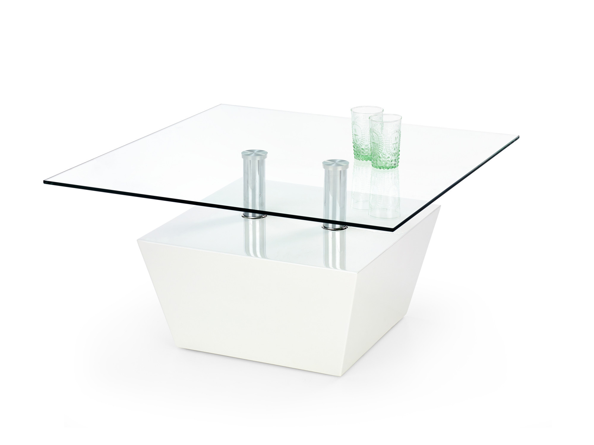 rozmery: 80/80/42 cm, materiál: sklo / lakovaná MDF, farba: biela