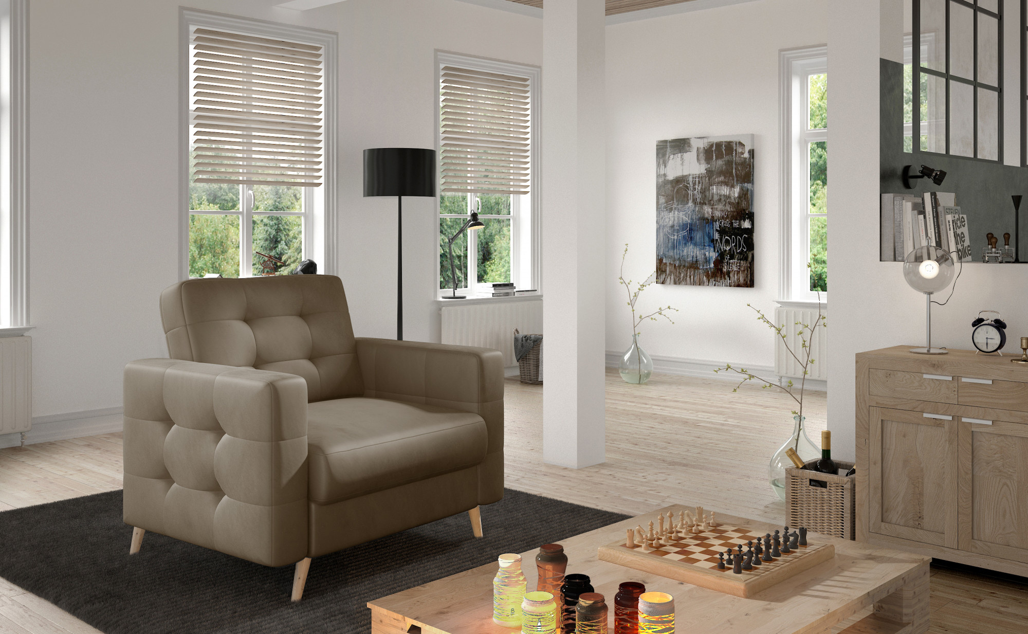 Kreslo Asgard je priestranný a elegantný kus nábytku s rozmermi 105 x 92 x 88 cm, ktorý je udržiavaný v klasickom dizajne. Vďaka svojmu dekoratívnemu prešívaniu na drevených nohách a operadle obohatí akýkoľvek obyčajný kút domova. Kreslo má tiež hlboký, hladký sedák, tvarovanú opierku chrbta, priestranný vankúš a mnoho farebných variantov. Neuveriteľný komfort nášho kresla je tiež ovplyvnený jeho výplňou. Vlnitá pružina v kombinácii s penou T30 je vynikajúcim riešením pre znalcov pohodlia. Vďaka nim je sedadlo správne tvarované a naša chrbtica je počas používania riadne chránená. Tento model, v závislosti od vašich preferencií, možno umiestniť ako do spálne, obývacej izby, tak aj do pracovne. Plne odporúčame náš nábytok Asgard. Taká voľba nikdy nesklame!