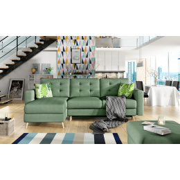 Asgard L je vkusná, atmosférická a priestranná rohová jednotka v retro štýle s rozmermi 248 x 162 x 93 cm. Vďaka mäkkému a pohodlnému sedáku, ktorý je vyplnený vlnovou pružinou a penou T30, je ideálny na relaxáciu počas dňa aj na odpočinok v noci. Funkcia spania o rozmeroch 120 x 210 cm je podporovaná automatizovaným rozkladacím mechanizmom DL. Model Asgard L má tiež priestranný úložný priestor na posteľnú bielizeň. Jeho výhody, ktoré zvyšujú estetické vnímanie, zahŕňajú štýlové prešívanie a jemné prešívanie na stranách, ako aj na opore rohovej jednotky. Okrem toho sú tu aj vysoké, drevené, sústružené nohy, čalúnené operadlo, rovnako ako vhodne tvarovaná opierka chrbta a vysoké podrúčky. Priestranná rohová jednotka Asgard L je navrhnutá pre elegantné a štýlové interiéry. S takýmto kusom nábytku určite získate značnú dávku luxusu, ktorá oživí váš interiér domova.