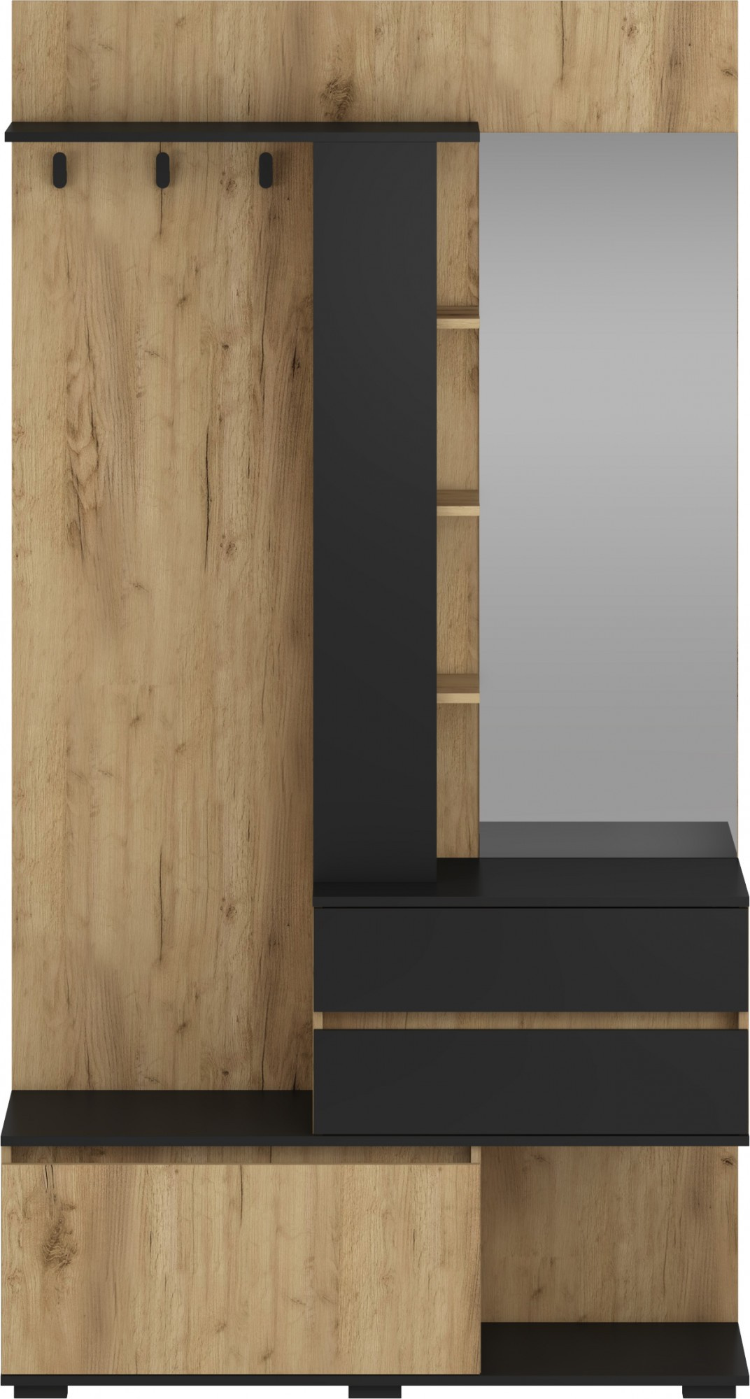 rozmery: 120/41/223 cm, materiál: laminovaná nábytková doska / zrkadlo, plastové úchyty, farby: zlatý dub - čierna