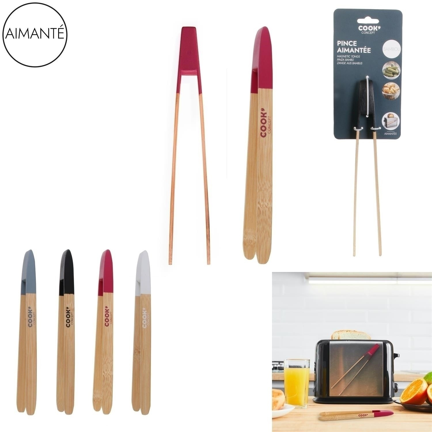 Bambusové kuchynské kliešte sú nepostrádateľným prvkom modernej kuchyne. Kliešte sa hodia všade tam, kde rukou nie je vhodné alebo by sa nemalo siahať. Bambusové kliešte s farebným zakončením majú vstavaný magnet, vďaka ktorému ich môžeme bez problémov zavesiť na kovové prvky, ako napr. toastovač, pri ktorého používaní sa kliešte rozhodne osvedčia. Bambusové, magnetické kliešte môžeme používať pri smažení, obracaní lievancov alebo vyberaní vaflí z vaflovača. Bambusové kliešte by sa nemali umývať v umývačke. Rozmery balenia: 9,5x35x2cm