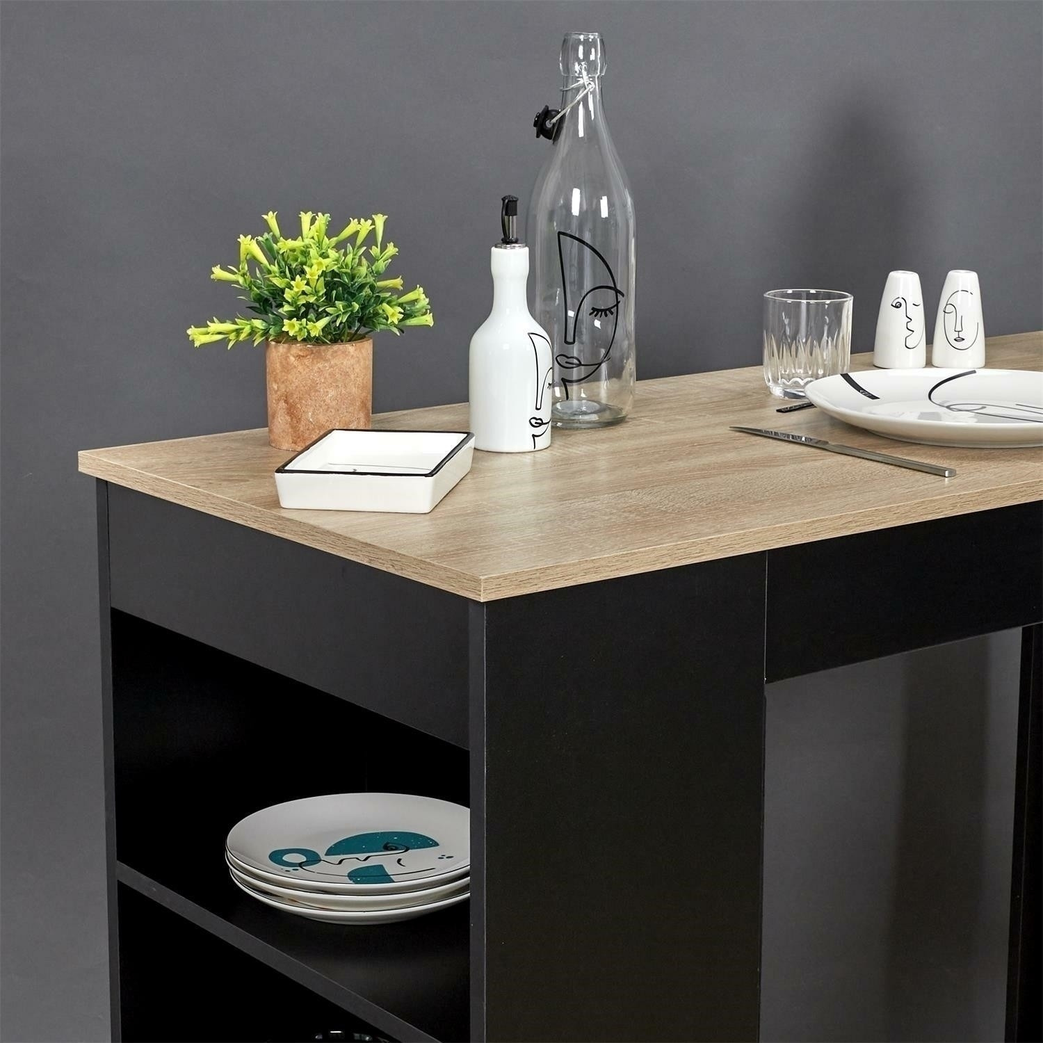Barový stôl Blox je nábytok pre modernú kuchyňu, kde je najdôležitejším aspektom úspora miesta spolu s pohodlným sedením. Ďalšia doska, ktorú zaručuje stôl Blox, bude ideálnym miestom pre rýchle raňajky. Vysoký barový stôl bol vyrobený z MDF dosky v lamináte. Stôl bol vybavený policami na bočnej stene.Vaše chvíle hodovania budú len lepšie s týmto krásnym stolom! - Zloženie: MDF - Rozmery: 115X50X103cm