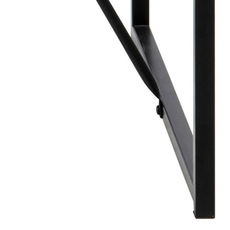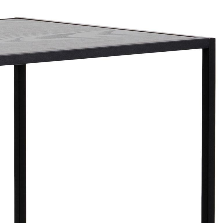 Barový stôl Seaford sa skvele hodí do minimalistických interiérov. Kostra nábytku je vyrobená z kovu lakovaného práškovou farbou, zatiaľ čo doska je z dosky s čiernou dyhou. Pod blatom sa nachádzajú dva pod uhlom usporiadané prvky, ktoré okrem dekoratívnej úlohy dodatočne stabilizujú základňu. Stôl sa hodí do kuchyne alebo jedálne, a tiež do verejných priestorov, ako sú bary či reštaurácie. Počet kartónov: 1 Rozmery kartónov: 121x62,5x7,5cm Hmotnosť kartónov: 14,2kg