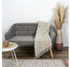 Bavlnený prírodný v boho štýle sa hodí do prírodného, svetlého interiéru. Koc s nenápadným vzorom a príjemnou na dotyk štruktúrou materiálu dodá kúzlo chladnejším večerom. Okraj jazierka bol dokončený hostami, ktoré mu dodávajú na pôvabe.