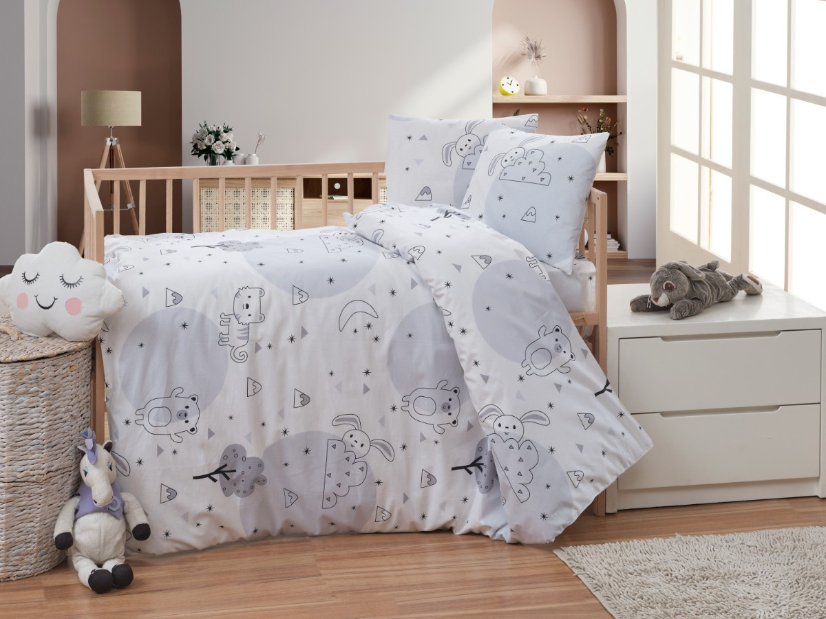 Posteľná bielizeň - detská bavlna je vyrobená z veľmi jemnej 100% bavlnenej tkaniny. Plošná hmotnosť (gramáž) tkaniny je 125g/m2. Tkanina má vysokú hustotu veľmi jemných priadzí a pre tieto svoje vlastnosti je veľmi jemná a príjemná na dotyk. Posteľná bielizeň je vyrobená s rozmerovou rezervou pre zrazenie po vypraní. Obliečky sú vyrobené v SR. Tkanina na výrobu obliečok je certifikovaná a zodpovedá hygienickým požiadavkám pre deti do troch rokov.