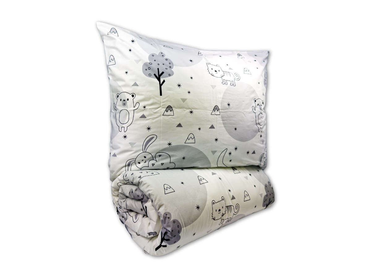Súprava obliečok obsahuje 1ks obliečky na prikrývku 140x200cm a 1ks obliečky na vankúš 70x90cm so zapínaním na zips.