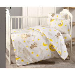 Posteľná bielizeň - detská bavlna je vyrobená z veľmi jemnej 100% bavlnenej tkaniny. Plošná hmotnosť (gramáž) tkaniny je 125g/m2. Tkanina má vysokú hustotu veľmi jemných priadzí a pre tieto svoje vlastnosti je veľmi jemná a príjemná na dotyk. Posteľná bielizeň je vyrobená s rozmerovou rezervou pre zrazenie po vypraní. Obliečky sú vyrobené v SR. Tkanina na výrobu obliečok je certifikovaná a zodpovedá hygienickým požiadavkám pre deti do troch rokov.