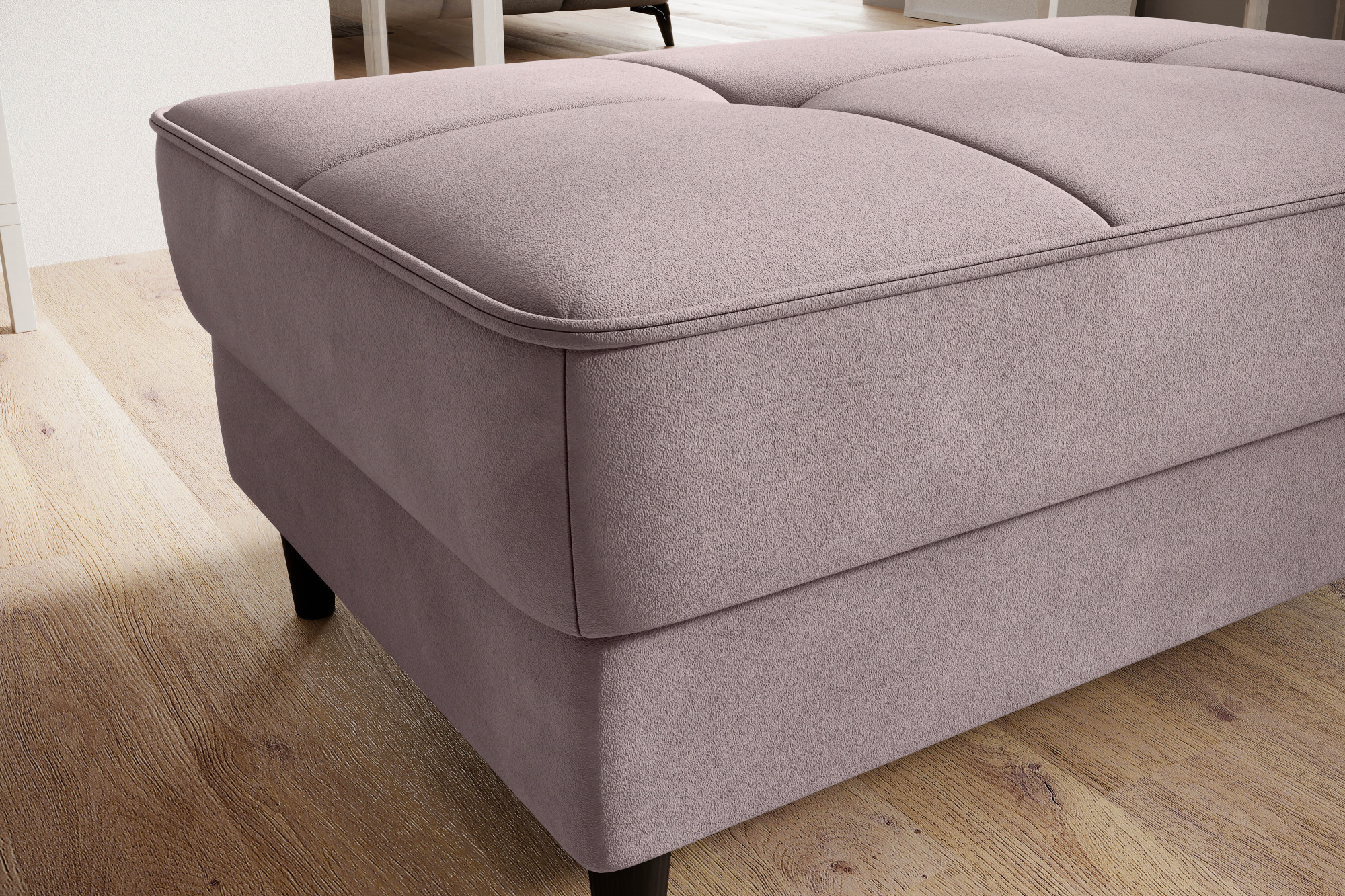 Model Bellis je naším vysoko kvalitným návrhom, ktorý zlepší usporiadanie vášho interiéru. Široké, pohodlné sedadlo tohto kusu nábytku vám umožní pohodlne odpočívať. Jeho minimalistická forma a jemné prešívanie fungujú výnimočne dobre s modernými interiérovými štýlmi. Interiér Bellis je vybavený špeciálnym mechanizmom, ktorý umožňuje jeho otvorenie. Bellis môže byť použitý ako ďalší priestor na ukladanie vecí. Puf je vyrobený iba z vysoko kvalitných materiálov: vysoko elastickej HR peny, peny T2130 a vlnitých pružín typu B. Tieto komponenty spoločne robia ponúkaný produkt veľmi pružným. Nohy taburetu sú vyrobené z masívneho dreva. Poskytujú mu dostatočne vysokú stabilitu a robia jeho ľahký tvar príjemným pre oko.