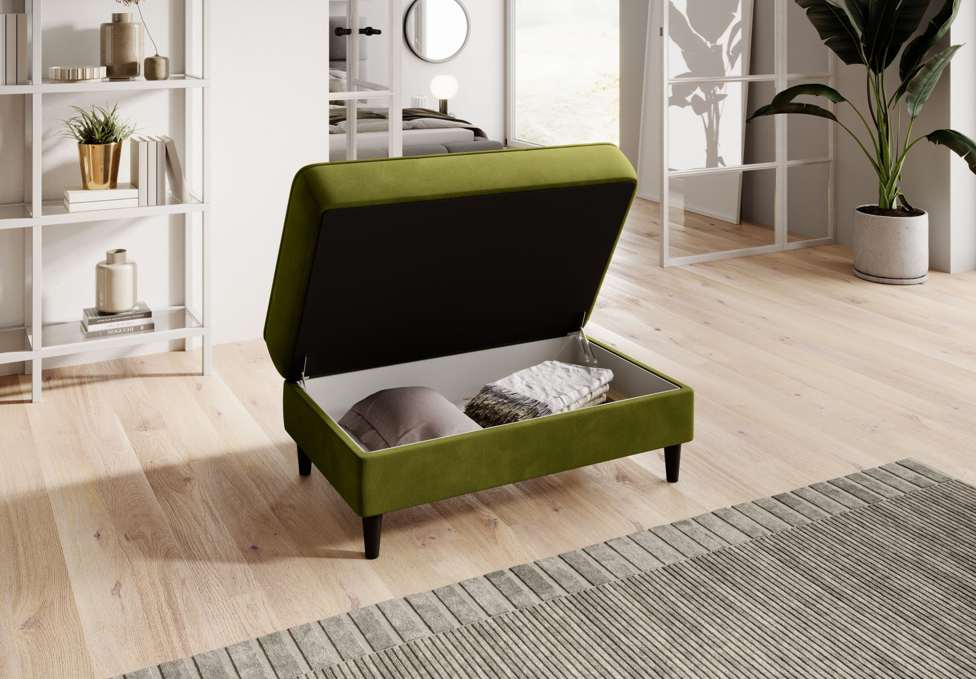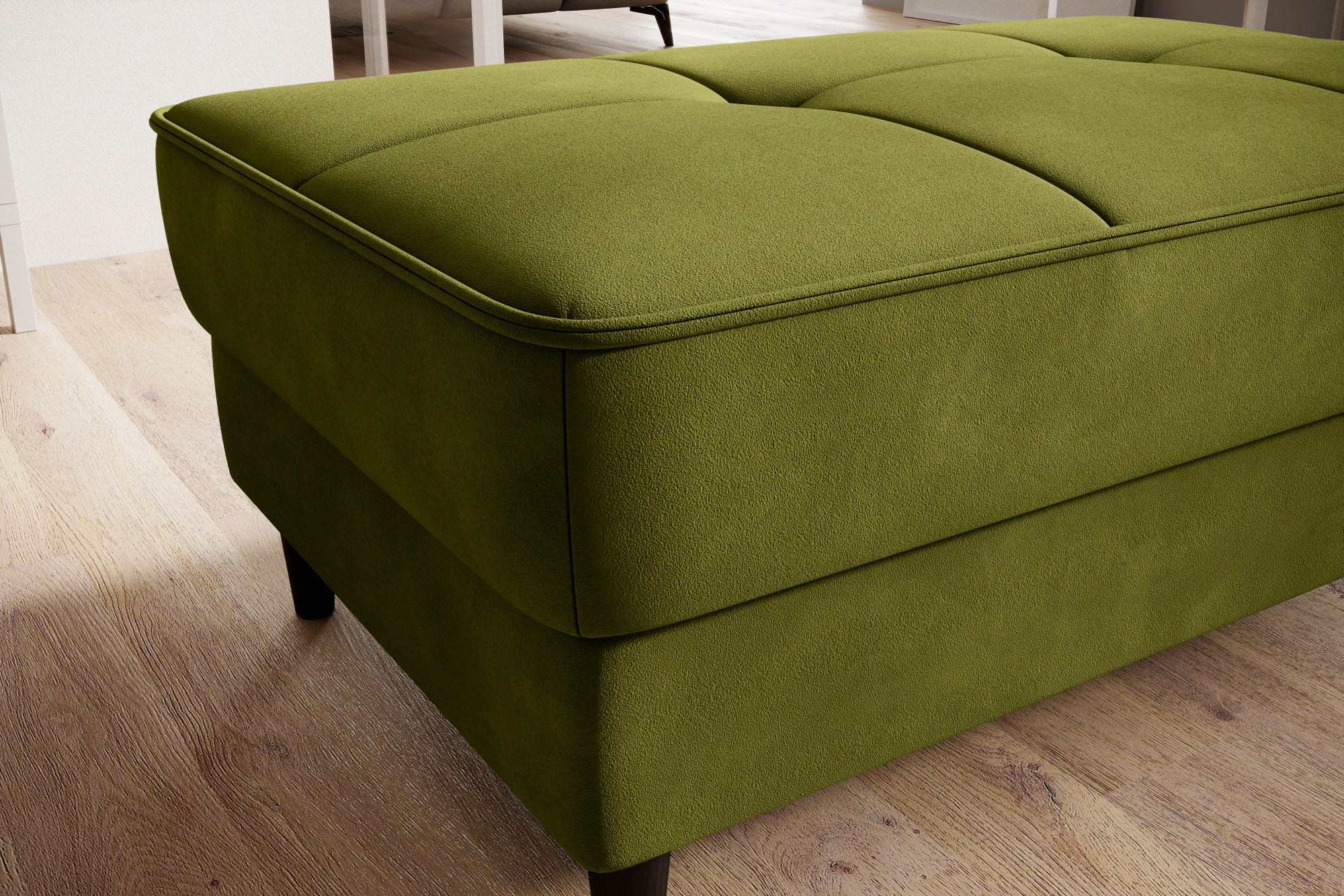 Model Bellis je naším vysoko kvalitným návrhom, ktorý zlepší usporiadanie vášho interiéru. Široké, pohodlné sedadlo tohto kusu nábytku vám umožní pohodlne odpočívať. Jeho minimalistická forma a jemné prešívanie fungujú výnimočne dobre s modernými interiérovými štýlmi. Interiér Bellis je vybavený špeciálnym mechanizmom, ktorý umožňuje jeho otvorenie. Bellis môže byť použitý ako ďalší priestor na ukladanie vecí. Puf je vyrobený iba z vysoko kvalitných materiálov: vysoko elastickej HR peny, peny T2130 a vlnitých pružín typu B. Tieto komponenty spoločne robia ponúkaný produkt veľmi pružným. Nohy taburetu sú vyrobené z masívneho dreva. Poskytujú mu dostatočne vysokú stabilitu a robia jeho ľahký tvar príjemným pre oko.