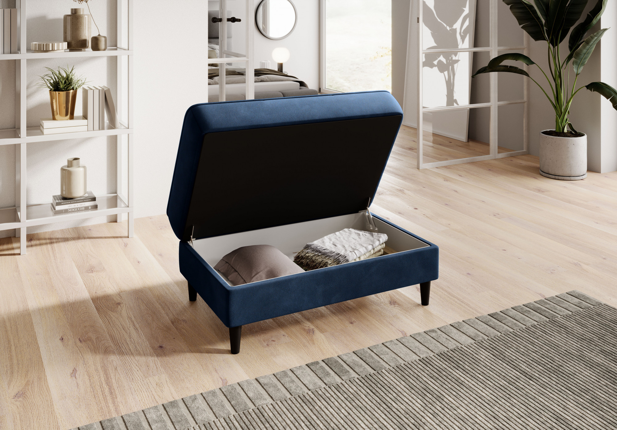 Model Bellis je naším vysoko kvalitným návrhom, ktorý zlepší usporiadanie vášho interiéru. Široké, pohodlné sedadlo tohto kusu nábytku vám umožní pohodlne odpočívať. Jeho minimalistická forma a jemné prešívanie fungujú výnimočne dobre s modernými interiérovými štýlmi. Interiér Bellis je vybavený špeciálnym mechanizmom, ktorý umožňuje jeho otvorenie. Bellis môže byť použitý ako ďalší priestor na ukladanie vecí. Puf je vyrobený iba z vysoko kvalitných materiálov: vysoko elastickej HR peny, peny T2130 a vlnitých pružín typu B. Tieto komponenty spoločne robia ponúkaný produkt veľmi pružným. Nohy taburetu sú vyrobené z masívneho dreva. Poskytujú mu dostatočne vysokú stabilitu a robia jeho ľahký tvar príjemným pre oko.
