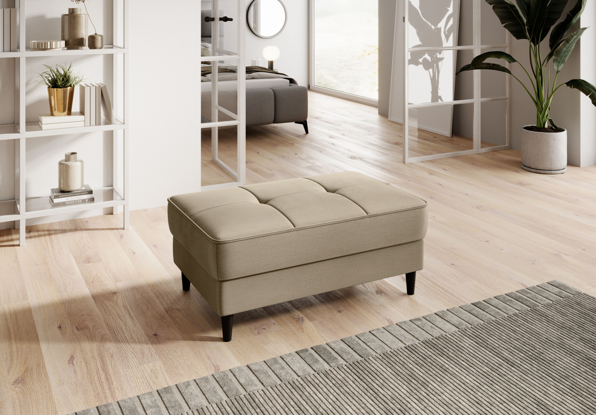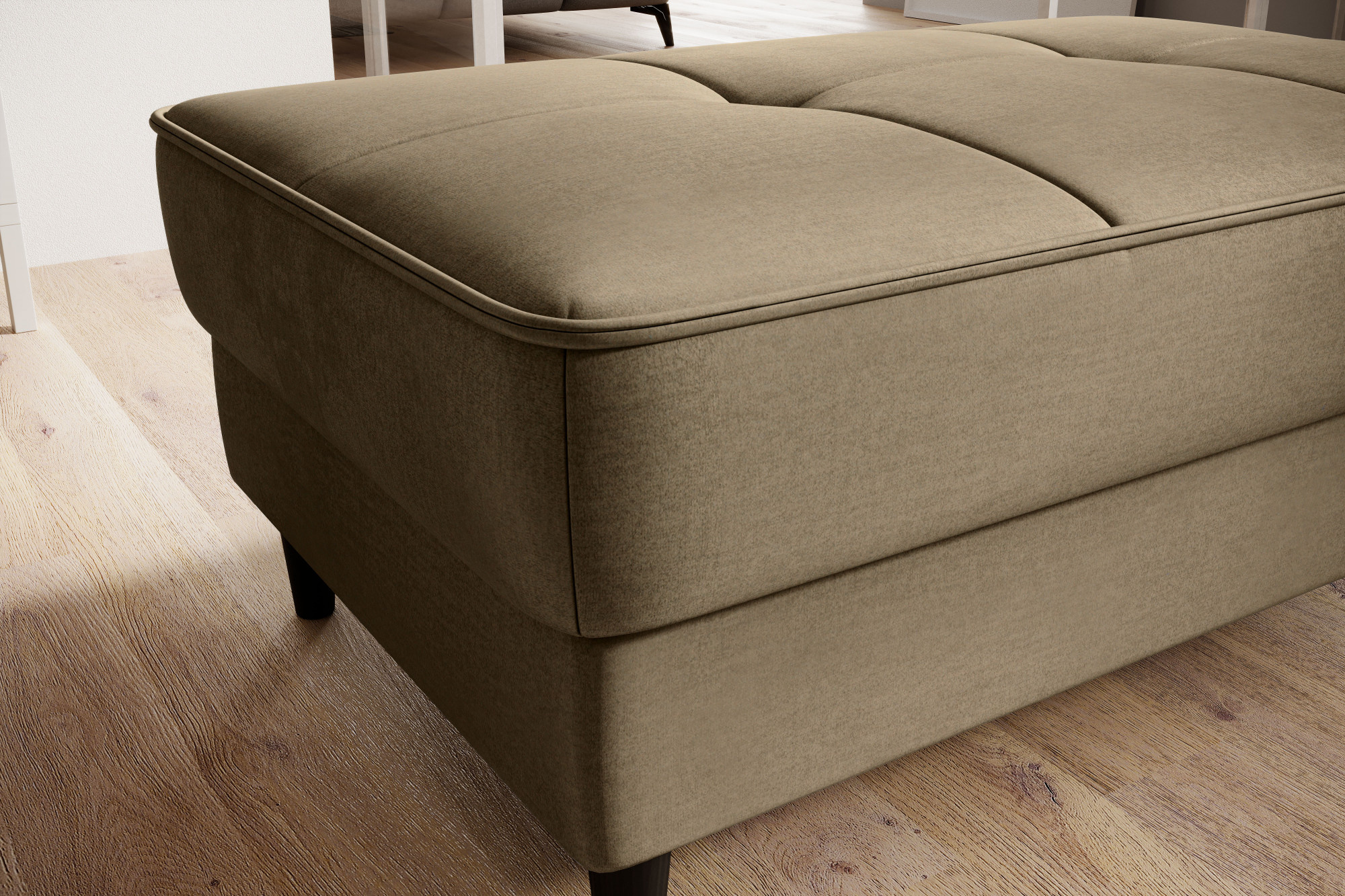 Model Bellis je naším vysoko kvalitným návrhom, ktorý zlepší usporiadanie vášho interiéru. Široké, pohodlné sedadlo tohto kusu nábytku vám umožní pohodlne odpočívať. Jeho minimalistická forma a jemné prešívanie fungujú výnimočne dobre s modernými interiérovými štýlmi. Interiér Bellis je vybavený špeciálnym mechanizmom, ktorý umožňuje jeho otvorenie. Bellis môže byť použitý ako ďalší priestor na ukladanie vecí. Puf je vyrobený iba z vysoko kvalitných materiálov: vysoko elastickej HR peny, peny T2130 a vlnitých pružín typu B. Tieto komponenty spoločne robia ponúkaný produkt veľmi pružným. Nohy taburetu sú vyrobené z masívneho dreva. Poskytujú mu dostatočne vysokú stabilitu a robia jeho ľahký tvar príjemným pre oko.