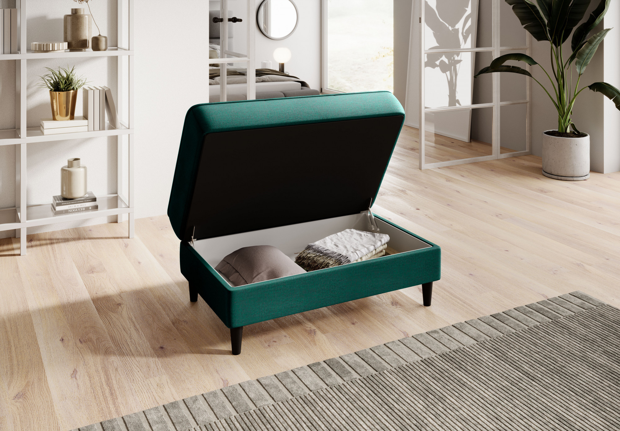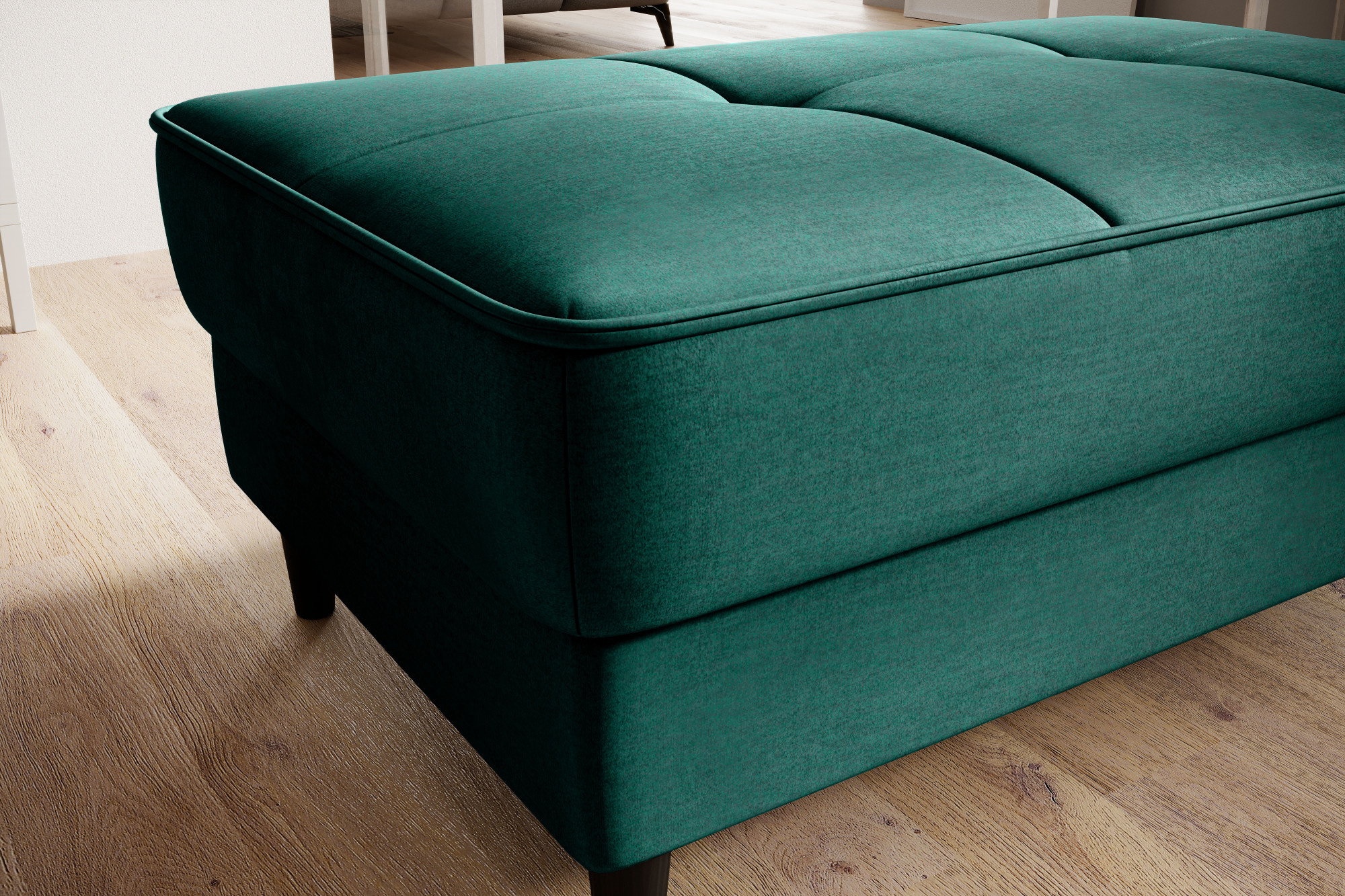 Model Bellis je naším vysoko kvalitným návrhom, ktorý zlepší usporiadanie vášho interiéru. Široké, pohodlné sedadlo tohto kusu nábytku vám umožní pohodlne odpočívať. Jeho minimalistická forma a jemné prešívanie fungujú výnimočne dobre s modernými interiérovými štýlmi. Interiér Bellis je vybavený špeciálnym mechanizmom, ktorý umožňuje jeho otvorenie. Bellis môže byť použitý ako ďalší priestor na ukladanie vecí. Puf je vyrobený iba z vysoko kvalitných materiálov: vysoko elastickej HR peny, peny T2130 a vlnitých pružín typu B. Tieto komponenty spoločne robia ponúkaný produkt veľmi pružným. Nohy taburetu sú vyrobené z masívneho dreva. Poskytujú mu dostatočne vysokú stabilitu a robia jeho ľahký tvar príjemným pre oko.