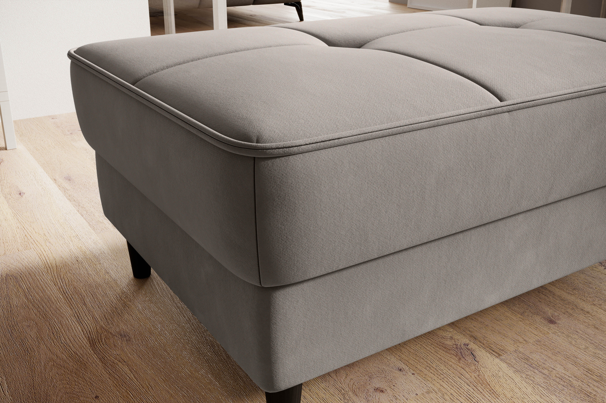 Model Bellis je naším vysoko kvalitným návrhom, ktorý zlepší usporiadanie vášho interiéru. Široké, pohodlné sedadlo tohto kusu nábytku vám umožní pohodlne odpočívať. Jeho minimalistická forma a jemné prešívanie fungujú výnimočne dobre s modernými interiérovými štýlmi. Interiér Bellis je vybavený špeciálnym mechanizmom, ktorý umožňuje jeho otvorenie. Bellis môže byť použitý ako ďalší priestor na ukladanie vecí. Puf je vyrobený iba z vysoko kvalitných materiálov: vysoko elastickej HR peny, peny T2130 a vlnitých pružín typu B. Tieto komponenty spoločne robia ponúkaný produkt veľmi pružným. Nohy taburetu sú vyrobené z masívneho dreva. Poskytujú mu dostatočne vysokú stabilitu a robia jeho ľahký tvar príjemným pre oko.