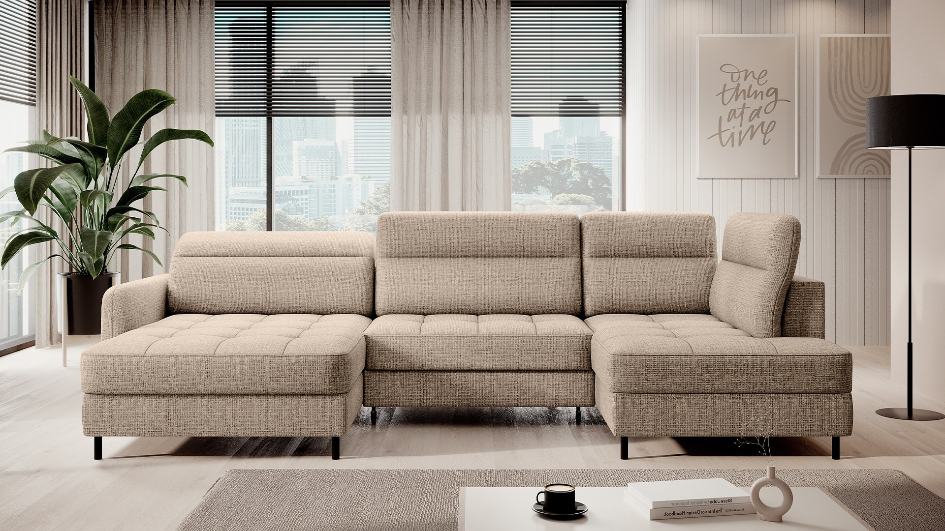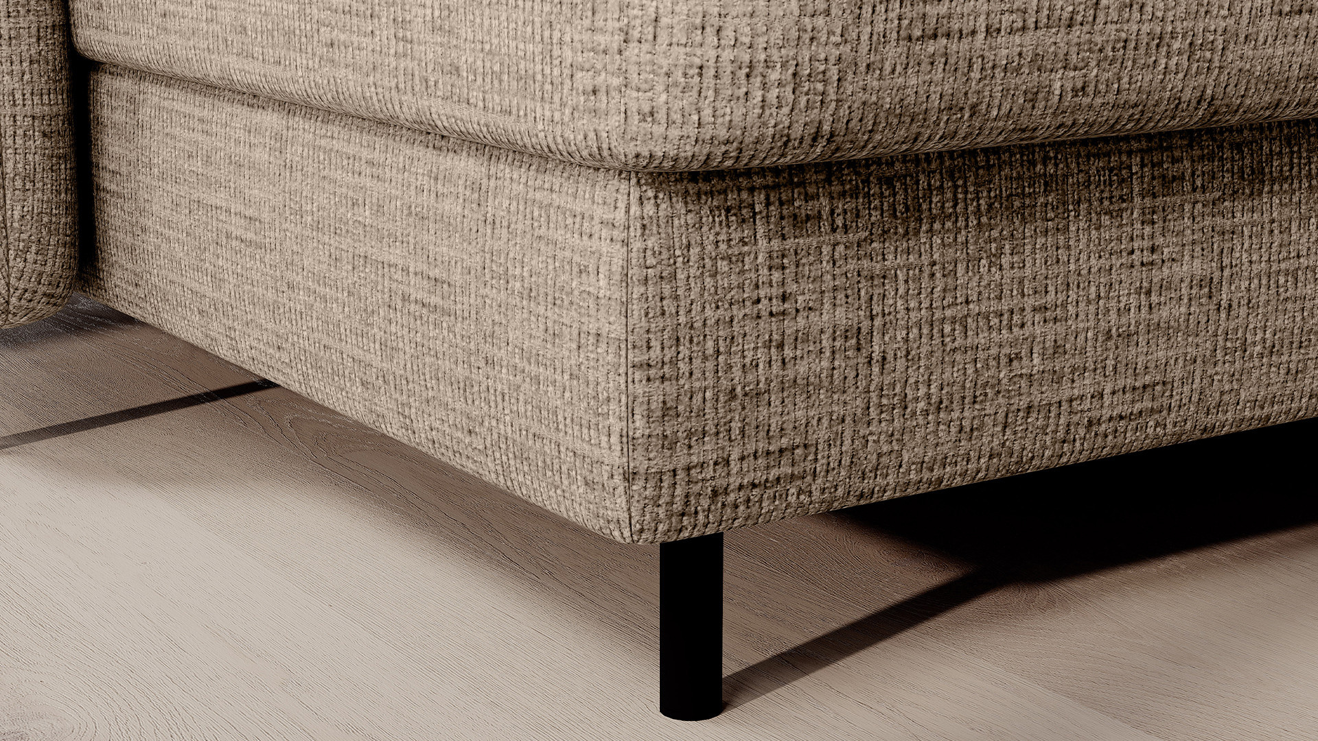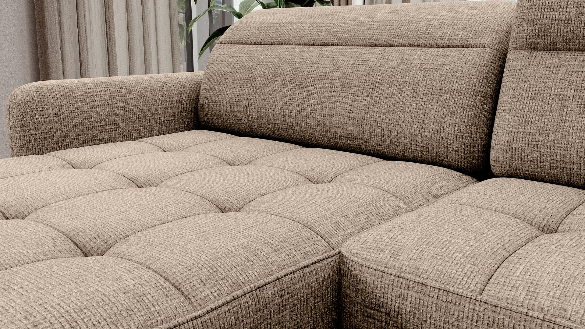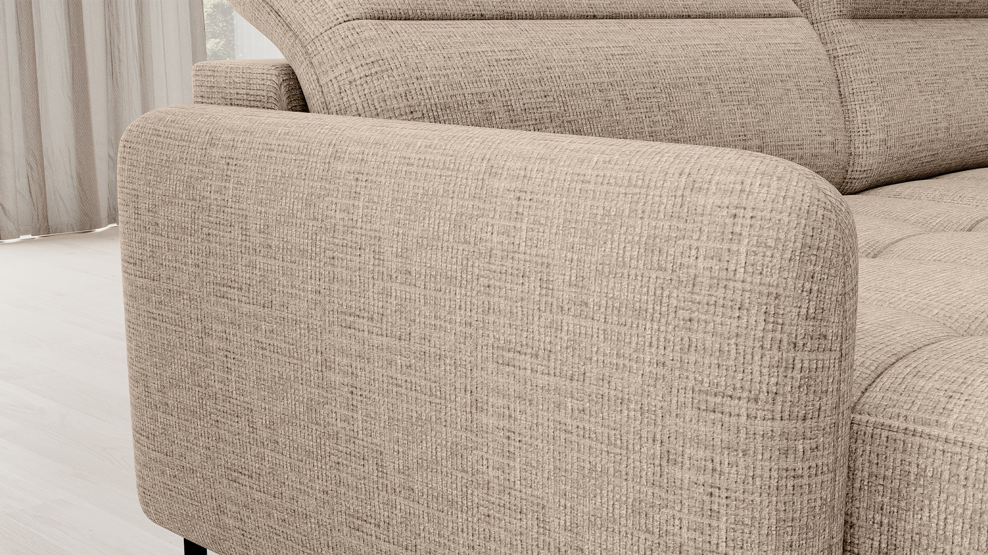 Rohová pohovka Berrto je neuveriteľne elegantný kus nábytku pre vašu obývačku, navrhnutý tak, aby vám poskytol výnimočné pohodlie a funkčnosť. Táto elegantná rohová pohovka kombinuje moderný dizajn s použitím vysoko kvalitných komponentov. Rohová pohovka Berrto je vybavená vlnovými pružinami typu B, ktoré v kombinácii s vysoko elastickou penou HR + T2130 vytvárajú povrch s bezkonkurenčným komfortom. Tento kus nábytku je mäkký, flexibilný a dokonale sa prispôsobí tvaru vášho tela, čo poskytuje nielen relaxáciu, ale aj úľavu svalom. Použitie čalúnnických popruhov a peny T2130 v operadle rohovej pohovky Berrto zabezpečuje jej odolnosť a odolnosť voči deformáciám. Nemusíte sa obávať nevzhľadných vrások - táto rohová pohovka si zachová svoj pôvodný vzhľad po mnoho rokov. Môžete ho rýchlo a jednoducho premeniť na pohodlnú posteľ, ktorá vám aj vašim hosťom poskytne pokojný spánok. Navyše rohová pohovka skrýva priestranný úložný priestor na posteľnú bielizeň, ktorý poskytuje dostatok miesta pre všetky potrebné textílie. Rohová pohovka Berrto ponúka nielen pohodlie, ale aj stabilitu. S pôsobivou nosnosťou 390 kg si ho môžete užívať po mnoho rokov, bez obáv o jeho odolnosť. Rohová pohovka Berrto vyniká nielen svojou funkčnosťou, ale aj estetickým dizajnom. Čierne oceľové nohy mu dodávajú moderný charakter a elegantný dizajn z neho robí výrazný prvok vašej obývacej miestnosti. Rohová pohovka Berrto je vybavená ľahko použiteľným mechanizmom typu Dolphin, ktorý umožňuje rýchlo ju premeniť na pohodlnú posteľ. Toto je ideálne riešenie, keď potrebujete priestor na spanie pre hostí. Rohová pohovka Berrto kombinuje luxus, pohodlie a funkčnosť. Jeho vysoko kvalitné remeselné spracovanie a starostlivé dokončenie z neho robia nielen ústredný bod vašej obývačky, ale aj miesto na relaxáciu a trávenie času s priateľmi a rodinou.