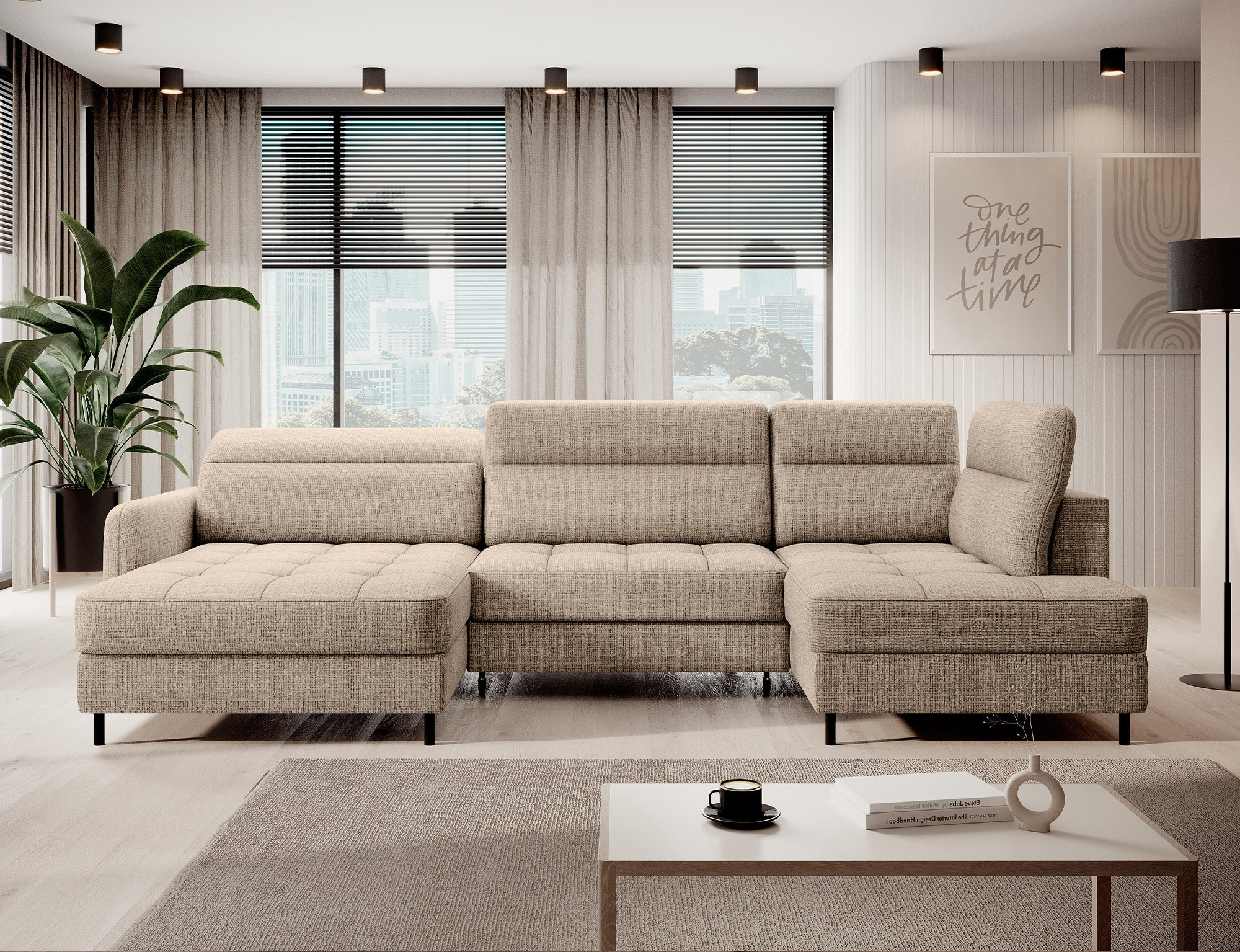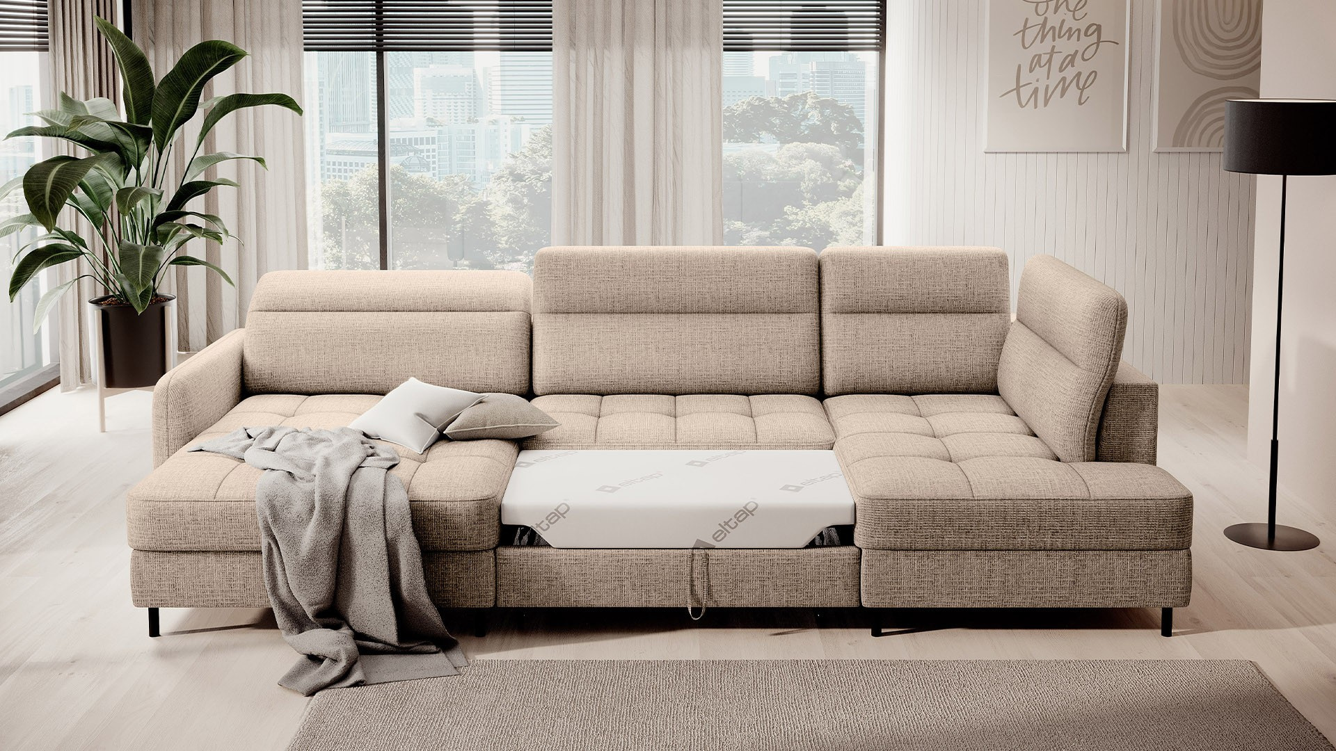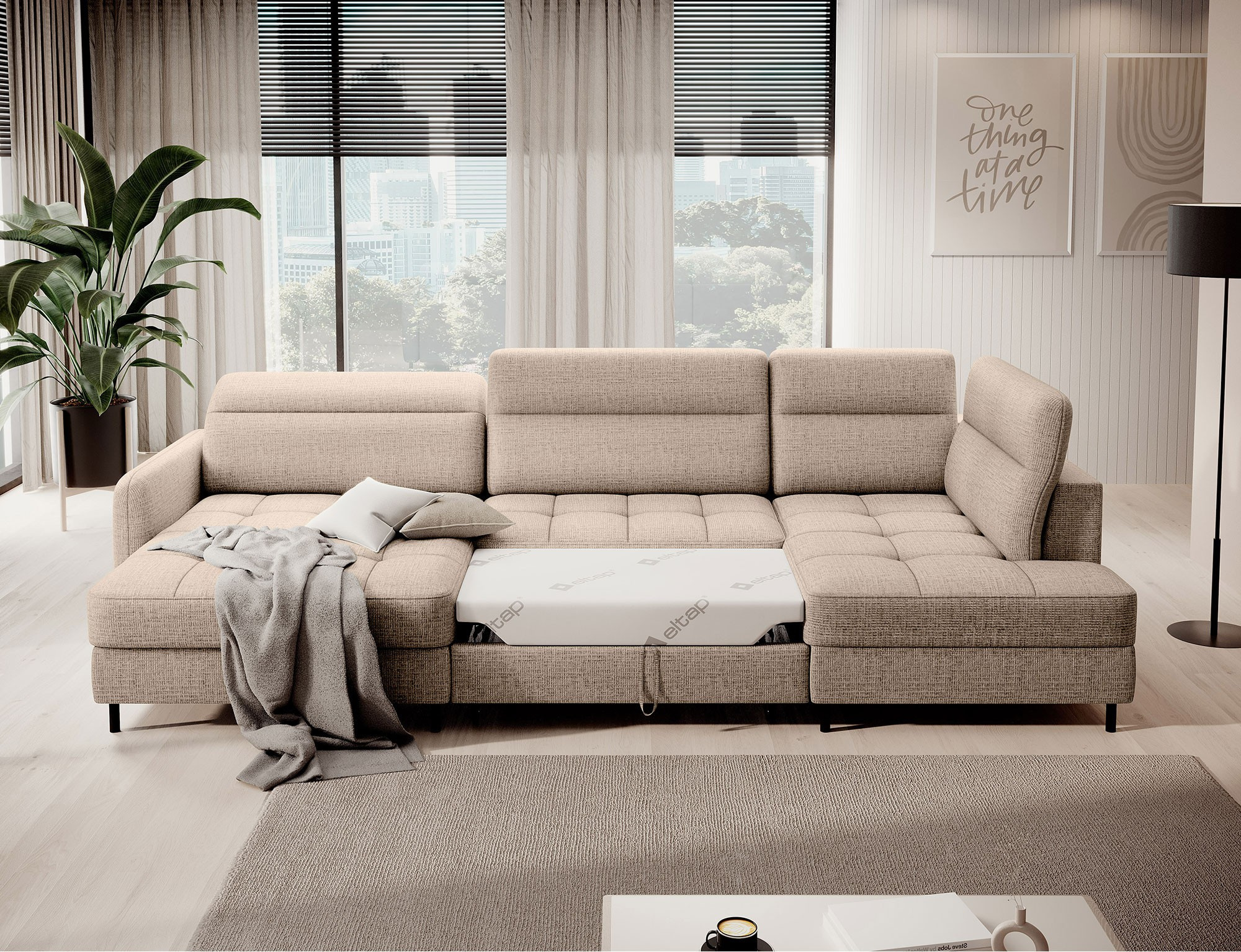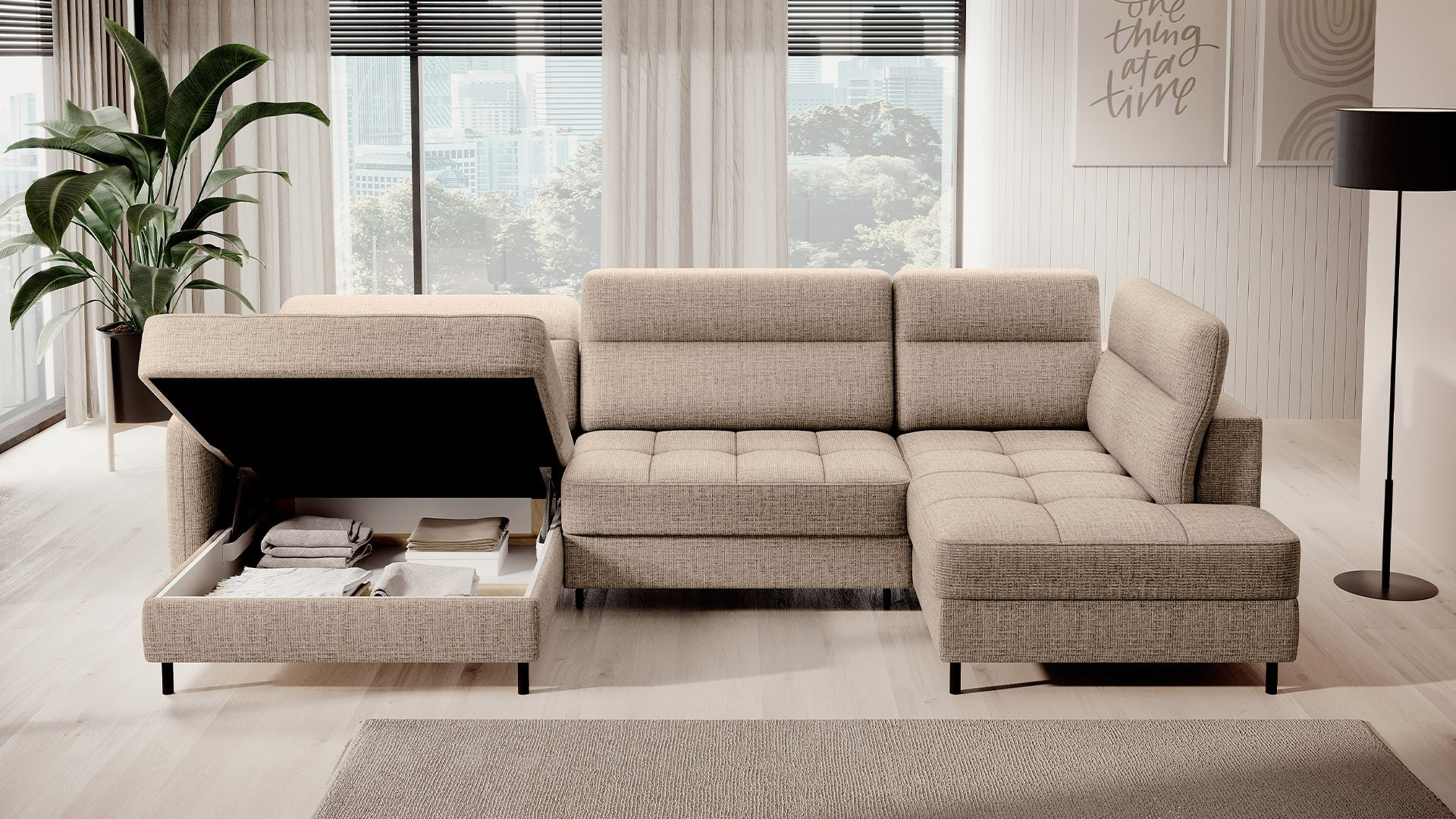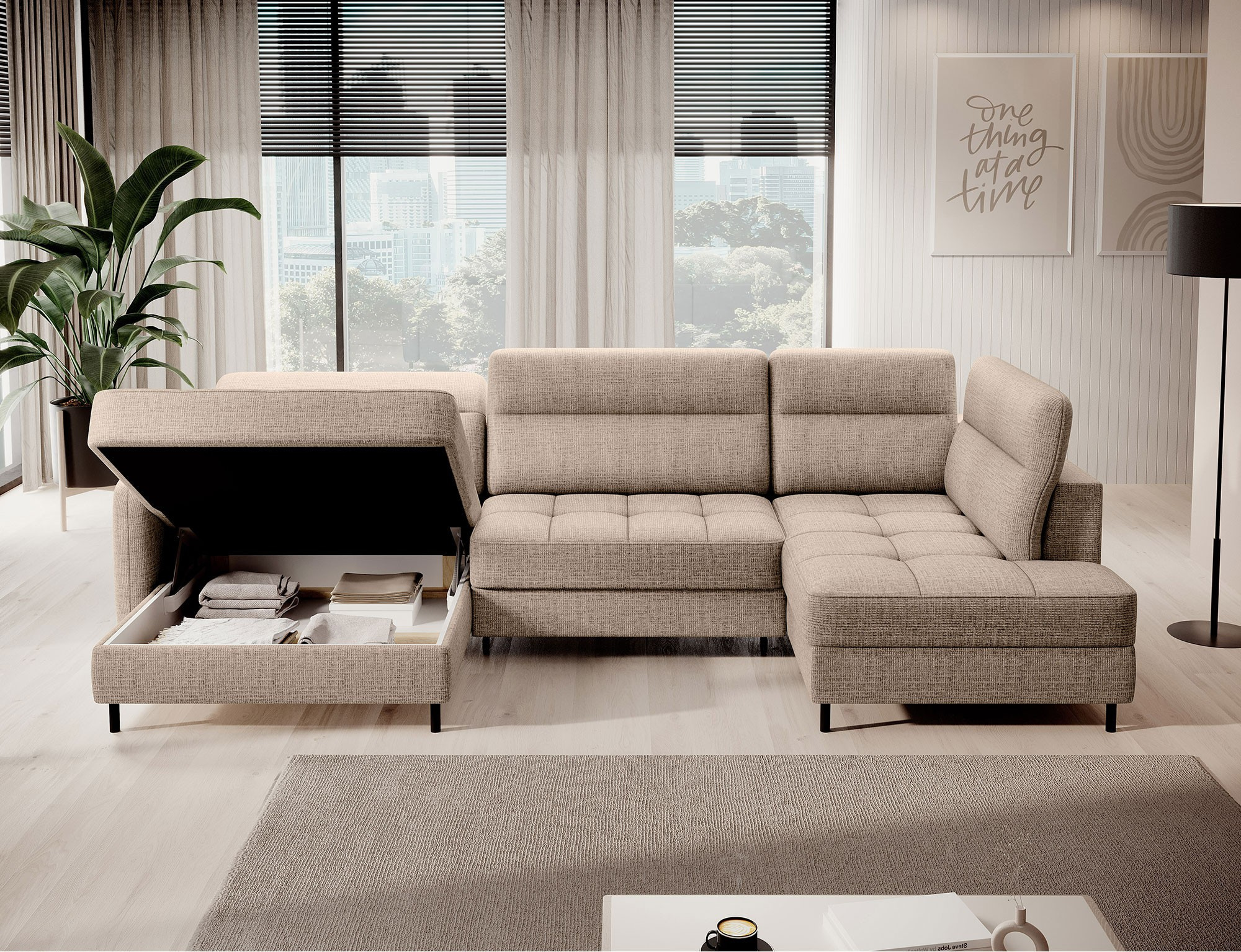 Rohová pohovka Berrto je neuveriteľne elegantný kus nábytku pre vašu obývačku, navrhnutý tak, aby vám poskytol výnimočné pohodlie a funkčnosť. Táto elegantná rohová pohovka kombinuje moderný dizajn s použitím vysoko kvalitných komponentov. Rohová pohovka Berrto je vybavená vlnovými pružinami typu B, ktoré v kombinácii s vysoko elastickou penou HR + T2130 vytvárajú povrch s bezkonkurenčným komfortom. Tento kus nábytku je mäkký, flexibilný a dokonale sa prispôsobí tvaru vášho tela, čo poskytuje nielen relaxáciu, ale aj úľavu svalom. Použitie čalúnnických popruhov a peny T2130 v operadle rohovej pohovky Berrto zabezpečuje jej odolnosť a odolnosť voči deformáciám. Nemusíte sa obávať nevzhľadných vrások - táto rohová pohovka si zachová svoj pôvodný vzhľad po mnoho rokov. Môžete ho rýchlo a jednoducho premeniť na pohodlnú posteľ, ktorá vám aj vašim hosťom poskytne pokojný spánok. Navyše rohová pohovka skrýva priestranný úložný priestor na posteľnú bielizeň, ktorý poskytuje dostatok miesta pre všetky potrebné textílie. Rohová pohovka Berrto ponúka nielen pohodlie, ale aj stabilitu. S pôsobivou nosnosťou 390 kg si ho môžete užívať po mnoho rokov, bez obáv o jeho odolnosť. Rohová pohovka Berrto vyniká nielen svojou funkčnosťou, ale aj estetickým dizajnom. Čierne oceľové nohy mu dodávajú moderný charakter a elegantný dizajn z neho robí výrazný prvok vašej obývacej miestnosti. Rohová pohovka Berrto je vybavená ľahko použiteľným mechanizmom typu Dolphin, ktorý umožňuje rýchlo ju premeniť na pohodlnú posteľ. Toto je ideálne riešenie, keď potrebujete priestor na spanie pre hostí. Rohová pohovka Berrto kombinuje luxus, pohodlie a funkčnosť. Jeho vysoko kvalitné remeselné spracovanie a starostlivé dokončenie z neho robia nielen ústredný bod vašej obývačky, ale aj miesto na relaxáciu a trávenie času s priateľmi a rodinou.
