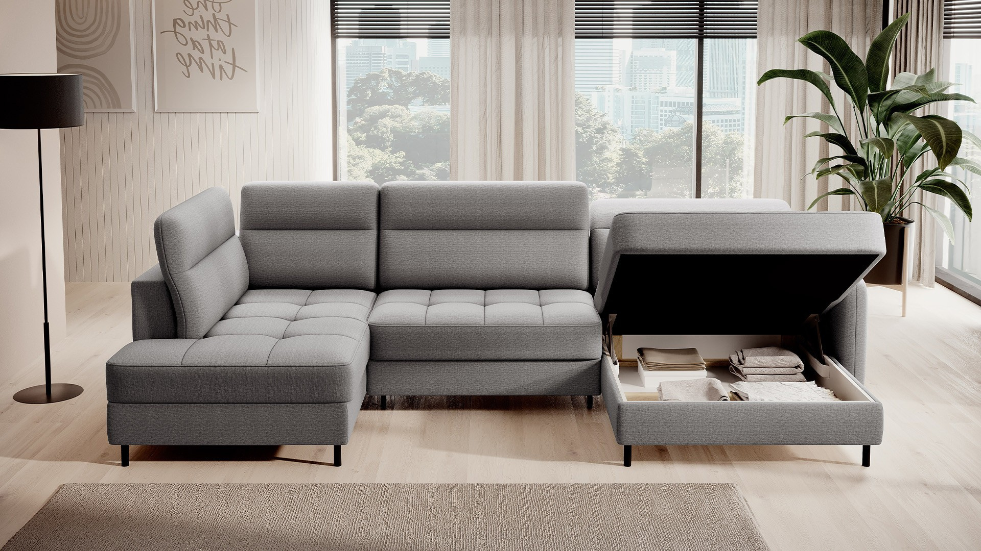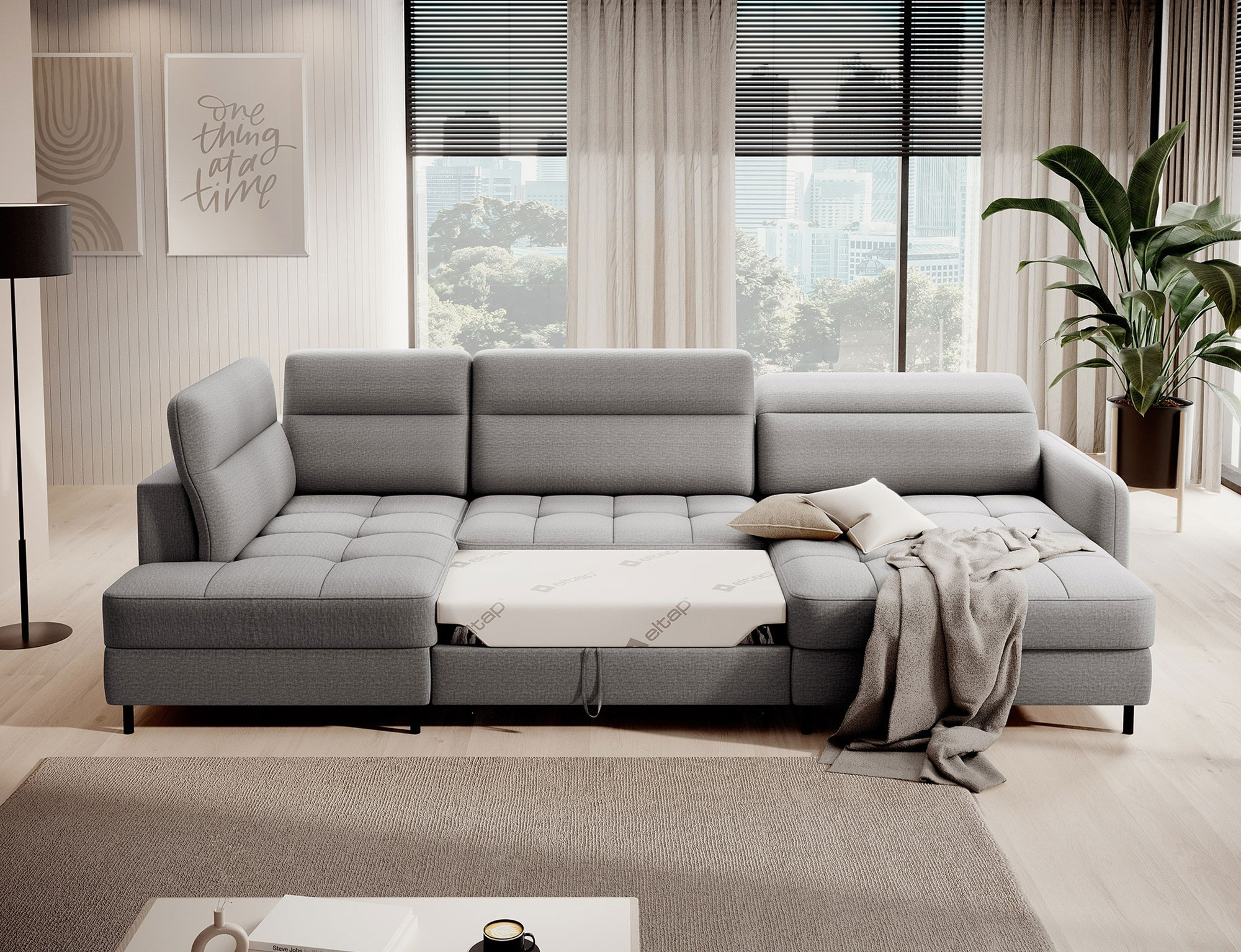 Rohová pohovka Berrto je neuveriteľne elegantný kus nábytku pre vašu obývačku, navrhnutý tak, aby vám poskytol výnimočné pohodlie a funkčnosť. Táto elegantná rohová pohovka kombinuje moderný dizajn s použitím vysoko kvalitných komponentov. Rohová pohovka Berrto je vybavená vlnovými pružinami typu B, ktoré v kombinácii s vysoko elastickou penou HR + T2130 vytvárajú povrch s bezkonkurenčným komfortom. Tento kus nábytku je mäkký, flexibilný a dokonale sa prispôsobí tvaru vášho tela, čo poskytuje nielen relaxáciu, ale aj úľavu svalom. Použitie čalúnnických popruhov a peny T2130 v operadle rohovej pohovky Berrto zabezpečuje jej odolnosť a odolnosť voči deformáciám. Nemusíte sa obávať nevzhľadných vrások - táto rohová pohovka si zachová svoj pôvodný vzhľad po mnoho rokov. Môžete ho rýchlo a jednoducho premeniť na pohodlnú posteľ, ktorá vám aj vašim hosťom poskytne pokojný spánok. Navyše rohová pohovka skrýva priestranný úložný priestor na posteľnú bielizeň, ktorý poskytuje dostatok miesta pre všetky potrebné textílie. Rohová pohovka Berrto ponúka nielen pohodlie, ale aj stabilitu. S pôsobivou nosnosťou 390 kg si ho môžete užívať po mnoho rokov, bez obáv o jeho odolnosť. Rohová pohovka Berrto vyniká nielen svojou funkčnosťou, ale aj estetickým dizajnom. Čierne oceľové nohy mu dodávajú moderný charakter a elegantný dizajn z neho robí výrazný prvok vašej obývacej miestnosti. Rohová pohovka Berrto je vybavená ľahko použiteľným mechanizmom typu Dolphin, ktorý umožňuje rýchlo ju premeniť na pohodlnú posteľ. Toto je ideálne riešenie, keď potrebujete priestor na spanie pre hostí. Rohová pohovka Berrto kombinuje luxus, pohodlie a funkčnosť. Jeho vysoko kvalitné remeselné spracovanie a starostlivé dokončenie z neho robia nielen ústredný bod vašej obývačky, ale aj miesto na relaxáciu a trávenie času s priateľmi a rodinou.