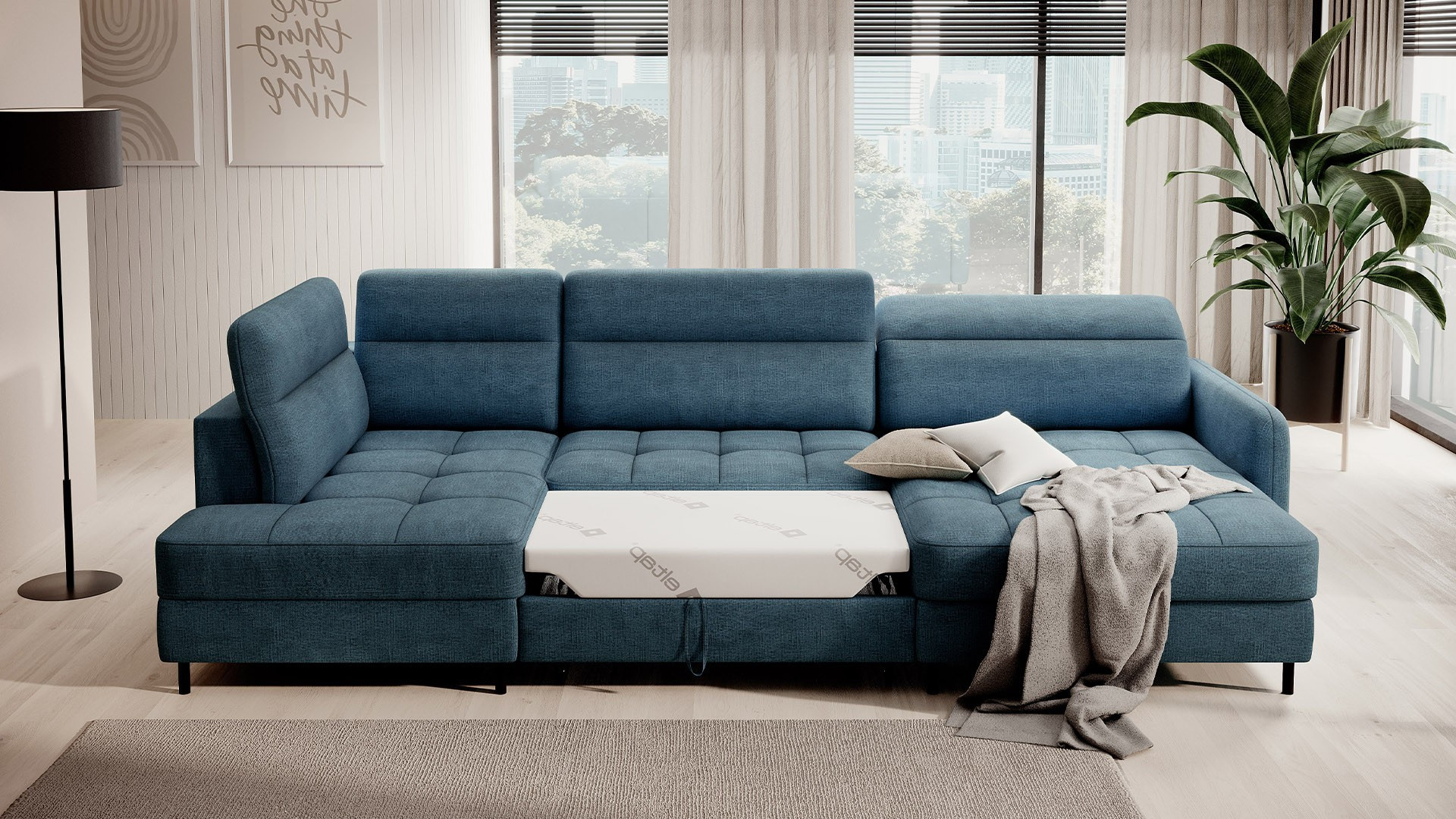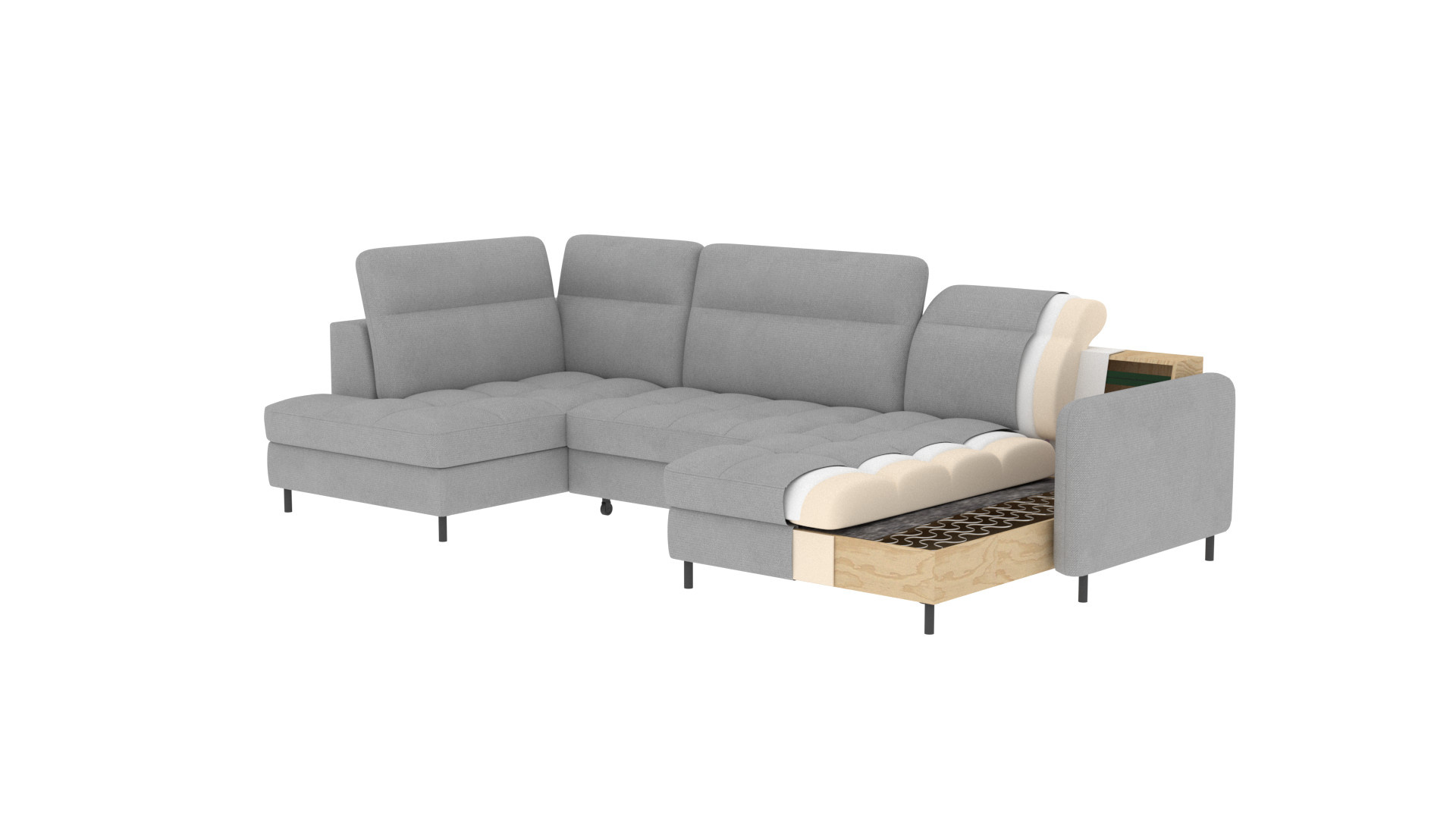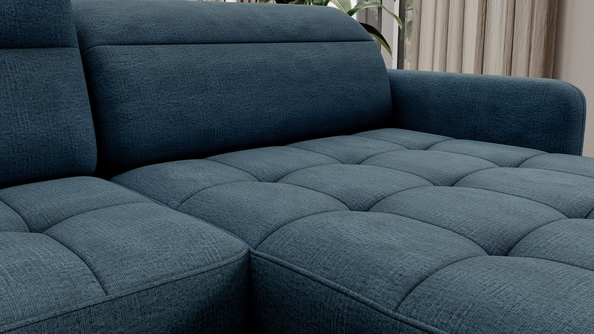 Rohová pohovka Berrto je neuveriteľne elegantný kus nábytku pre vašu obývačku, navrhnutý tak, aby vám poskytol výnimočné pohodlie a funkčnosť. Táto elegantná rohová pohovka kombinuje moderný dizajn s použitím vysoko kvalitných komponentov. Rohová pohovka Berrto je vybavená vlnovými pružinami typu B, ktoré v kombinácii s vysoko elastickou penou HR + T2130 vytvárajú povrch s bezkonkurenčným komfortom. Tento kus nábytku je mäkký, flexibilný a dokonale sa prispôsobí tvaru vášho tela, čo poskytuje nielen relaxáciu, ale aj úľavu svalom. Použitie čalúnnických popruhov a peny T2130 v operadle rohovej pohovky Berrto zabezpečuje jej odolnosť a odolnosť voči deformáciám. Nemusíte sa obávať nevzhľadných vrások - táto rohová pohovka si zachová svoj pôvodný vzhľad po mnoho rokov. Môžete ho rýchlo a jednoducho premeniť na pohodlnú posteľ, ktorá vám aj vašim hosťom poskytne pokojný spánok. Navyše rohová pohovka skrýva priestranný úložný priestor na posteľnú bielizeň, ktorý poskytuje dostatok miesta pre všetky potrebné textílie. Rohová pohovka Berrto ponúka nielen pohodlie, ale aj stabilitu. S pôsobivou nosnosťou 390 kg si ho môžete užívať po mnoho rokov, bez obáv o jeho odolnosť. Rohová pohovka Berrto vyniká nielen svojou funkčnosťou, ale aj estetickým dizajnom. Čierne oceľové nohy mu dodávajú moderný charakter a elegantný dizajn z neho robí výrazný prvok vašej obývacej miestnosti. Rohová pohovka Berrto je vybavená ľahko použiteľným mechanizmom typu Dolphin, ktorý umožňuje rýchlo ju premeniť na pohodlnú posteľ. Toto je ideálne riešenie, keď potrebujete priestor na spanie pre hostí. Rohová pohovka Berrto kombinuje luxus, pohodlie a funkčnosť. Jeho vysoko kvalitné remeselné spracovanie a starostlivé dokončenie z neho robia nielen ústredný bod vašej obývačky, ale aj miesto na relaxáciu a trávenie času s priateľmi a rodinou.
