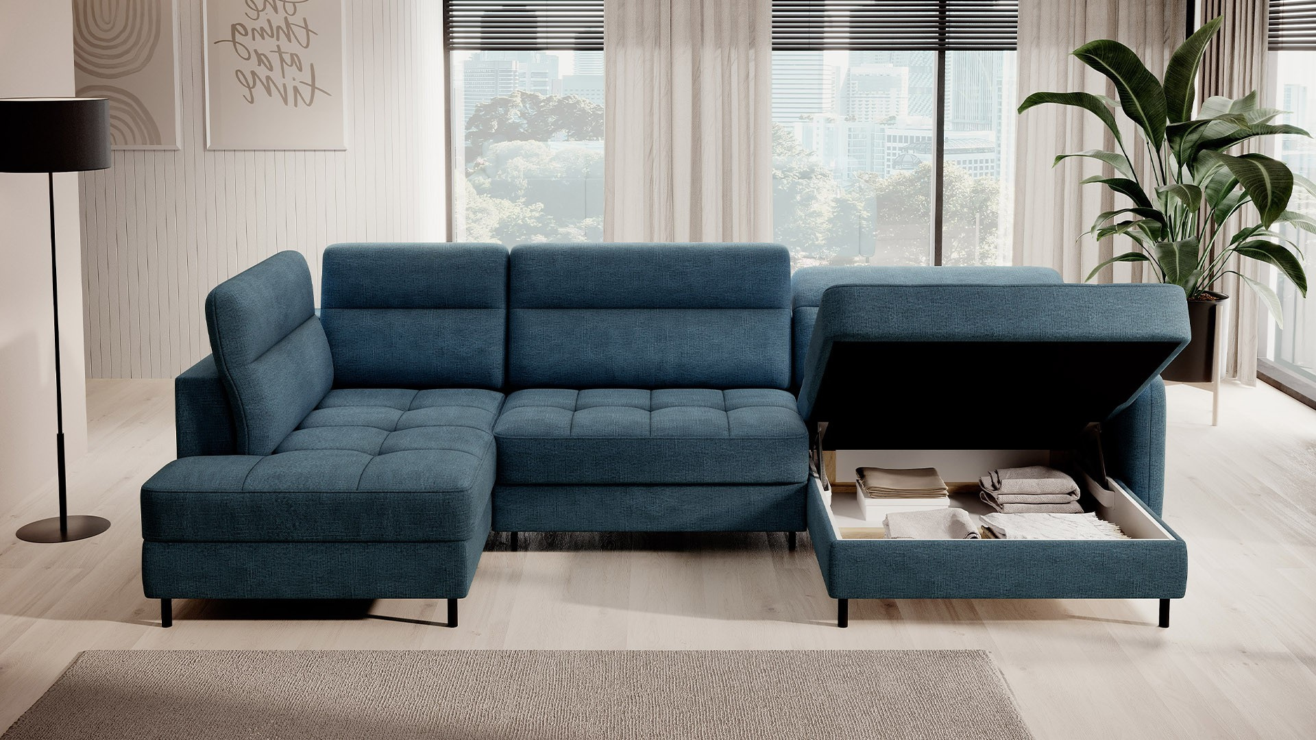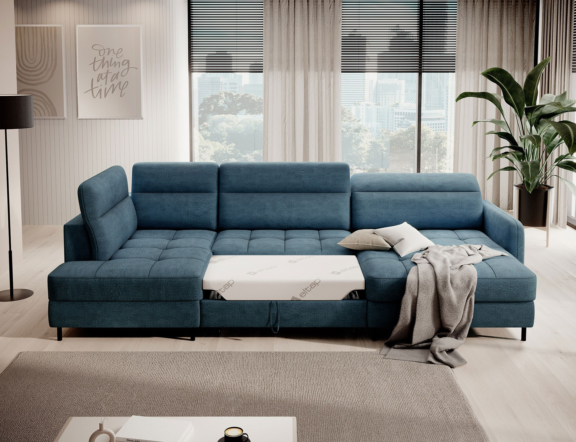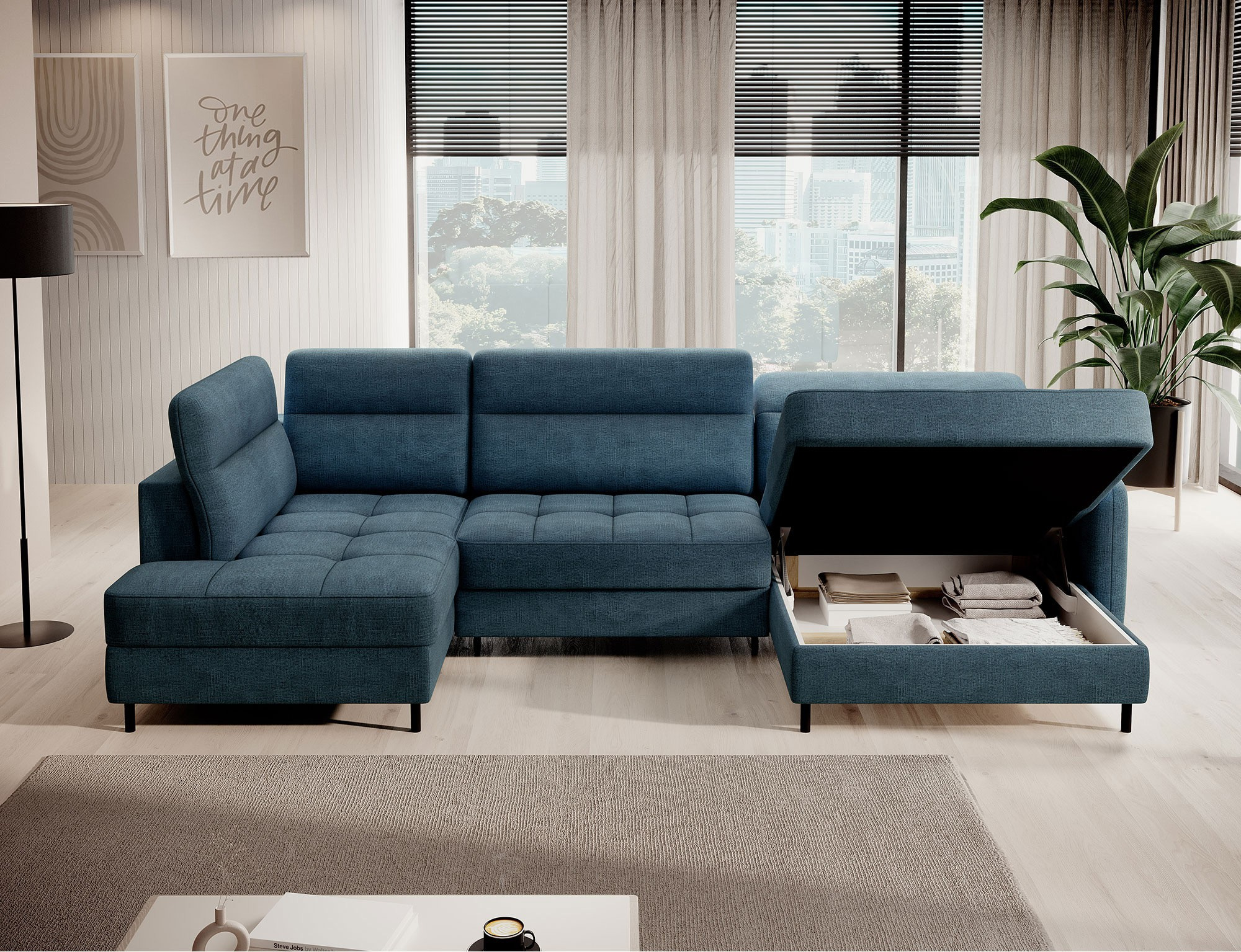 Rohová pohovka Berrto je neuveriteľne elegantný kus nábytku pre vašu obývačku, navrhnutý tak, aby vám poskytol výnimočné pohodlie a funkčnosť. Táto elegantná rohová pohovka kombinuje moderný dizajn s použitím vysoko kvalitných komponentov. Rohová pohovka Berrto je vybavená vlnovými pružinami typu B, ktoré v kombinácii s vysoko elastickou penou HR + T2130 vytvárajú povrch s bezkonkurenčným komfortom. Tento kus nábytku je mäkký, flexibilný a dokonale sa prispôsobí tvaru vášho tela, čo poskytuje nielen relaxáciu, ale aj úľavu svalom. Použitie čalúnnických popruhov a peny T2130 v operadle rohovej pohovky Berrto zabezpečuje jej odolnosť a odolnosť voči deformáciám. Nemusíte sa obávať nevzhľadných vrások - táto rohová pohovka si zachová svoj pôvodný vzhľad po mnoho rokov. Môžete ho rýchlo a jednoducho premeniť na pohodlnú posteľ, ktorá vám aj vašim hosťom poskytne pokojný spánok. Navyše rohová pohovka skrýva priestranný úložný priestor na posteľnú bielizeň, ktorý poskytuje dostatok miesta pre všetky potrebné textílie. Rohová pohovka Berrto ponúka nielen pohodlie, ale aj stabilitu. S pôsobivou nosnosťou 390 kg si ho môžete užívať po mnoho rokov, bez obáv o jeho odolnosť. Rohová pohovka Berrto vyniká nielen svojou funkčnosťou, ale aj estetickým dizajnom. Čierne oceľové nohy mu dodávajú moderný charakter a elegantný dizajn z neho robí výrazný prvok vašej obývacej miestnosti. Rohová pohovka Berrto je vybavená ľahko použiteľným mechanizmom typu Dolphin, ktorý umožňuje rýchlo ju premeniť na pohodlnú posteľ. Toto je ideálne riešenie, keď potrebujete priestor na spanie pre hostí. Rohová pohovka Berrto kombinuje luxus, pohodlie a funkčnosť. Jeho vysoko kvalitné remeselné spracovanie a starostlivé dokončenie z neho robia nielen ústredný bod vašej obývačky, ale aj miesto na relaxáciu a trávenie času s priateľmi a rodinou.