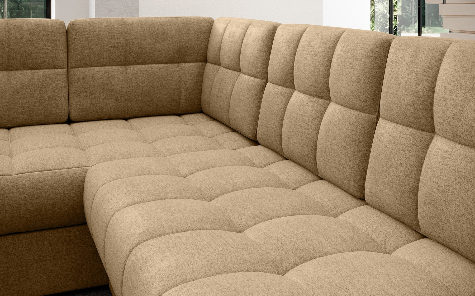 Moderná rohová rozkladacia pohovka Blewett 299x198x82 cm je ideálnou voľbou pre tých, ktorí hľadajú elegantnú a pohodlnú rohovú pohovku do svojej obývačky.Rohová pohovka Blewett vyniká pohodlným sedákom vyrobeným z vlnových pružín typu B a polyuretánových pien T2540 a T2130, čo zaisťuje dlhodobé pohodlie a odolnosť.Operadlo je vyplnené penovou výplňou, ktorá sa dokonale prispôsobí tvaru chrbta, čím zvyšuje komfort relaxácie.Rohová sedacia súprava Blewett v obývacej izbe je vybavená spaciou funkciou typu Dolphin, ktorá umožňuje rýchle rozloženie, a praktickým úložným priestorom na lôžkoviny—ideálna na skladovanie.Táto moderná rohová pohovka Blewett má čalúnené operadlo, vďaka čomu vyzerá skvele v akejkoľvek časti miestnosti.Robustné čierne plastové nohy zdôrazňujú moderný štýl pohovky.Vysoko kvalitné remeselné spracovanie, funkčnosť a módny dizajn robia z Blewettu vynikajúcu rozkladaciu pohovku, ktorá spĺňa očakávania aj tých najnáročnejších používateľov.