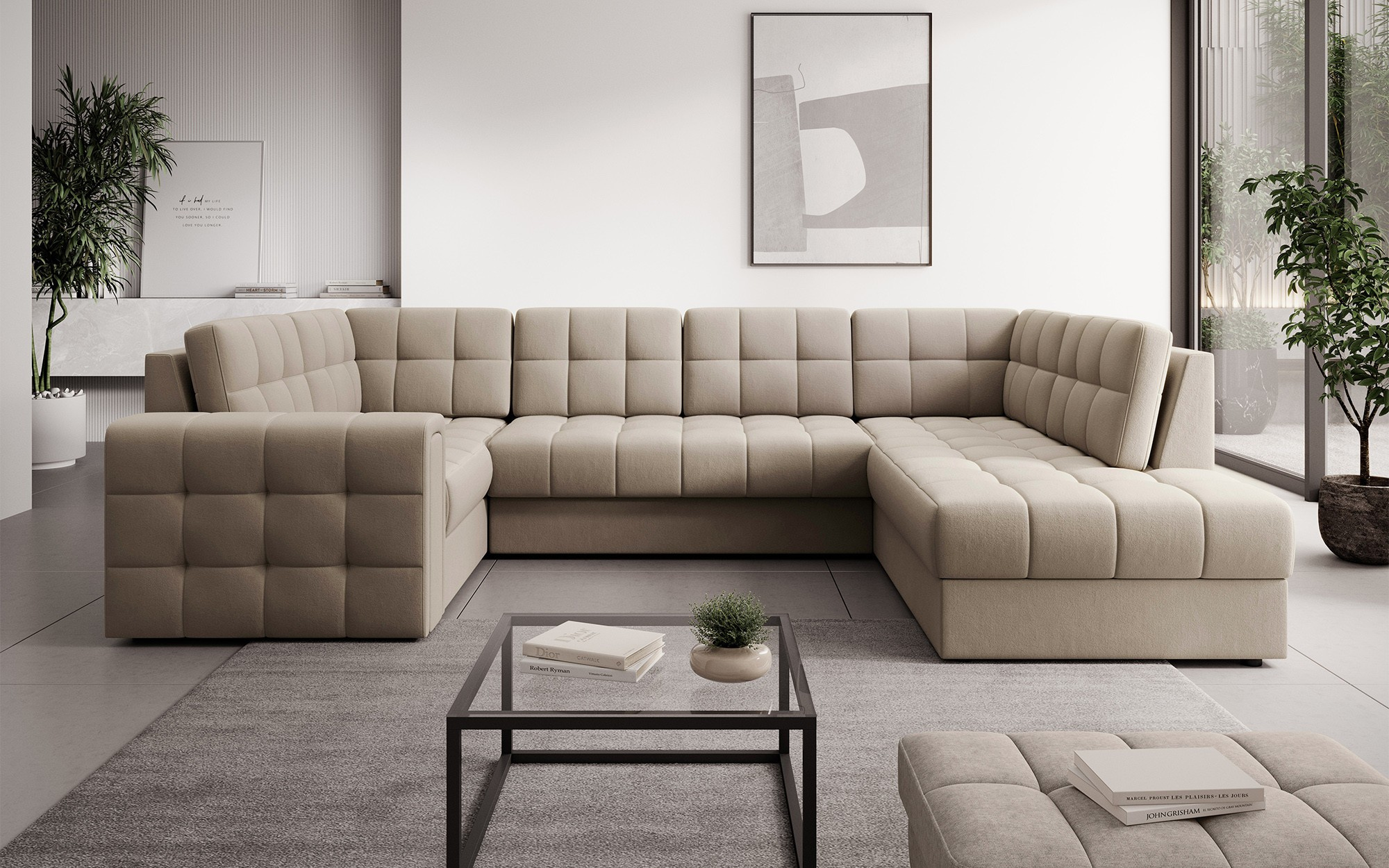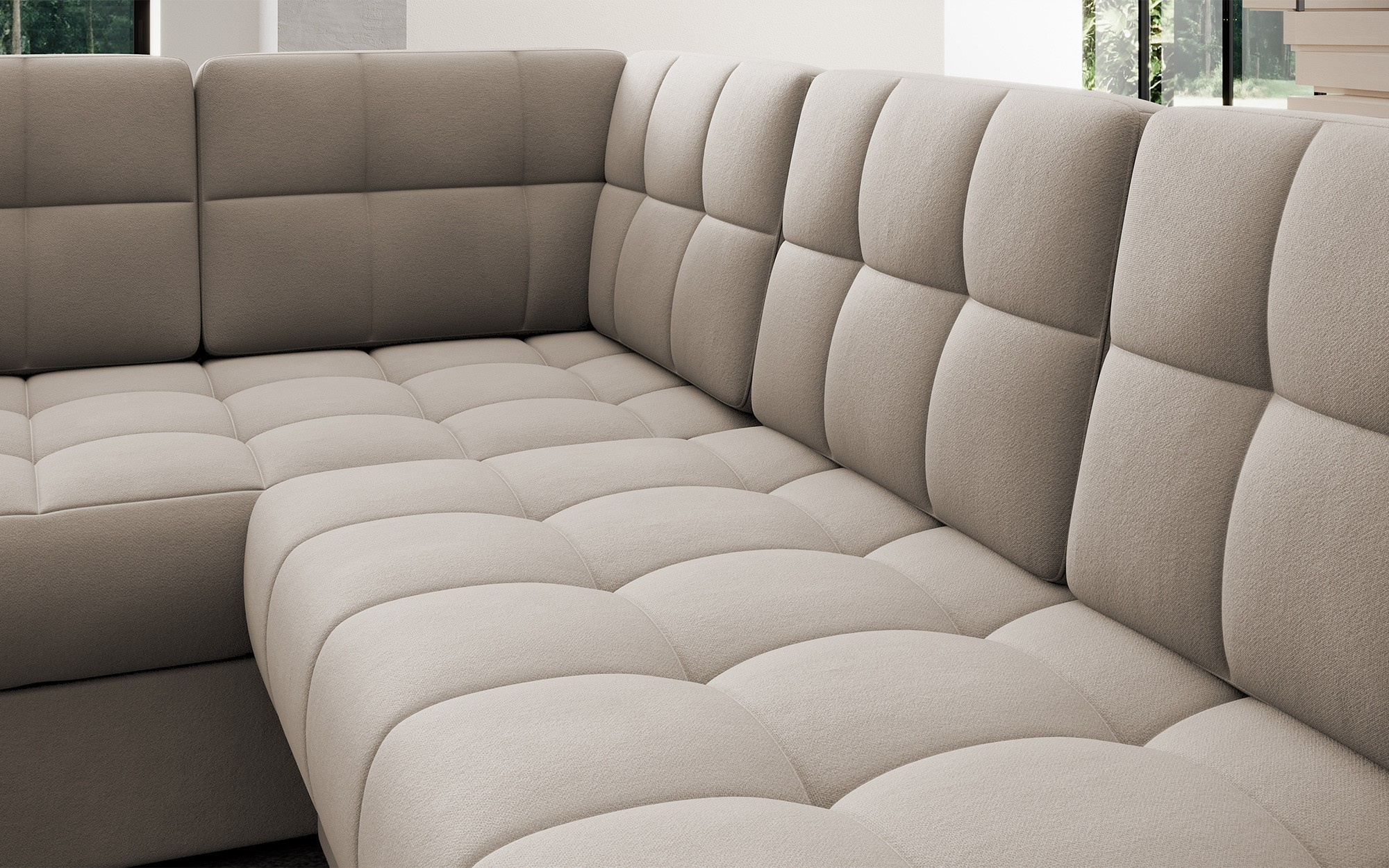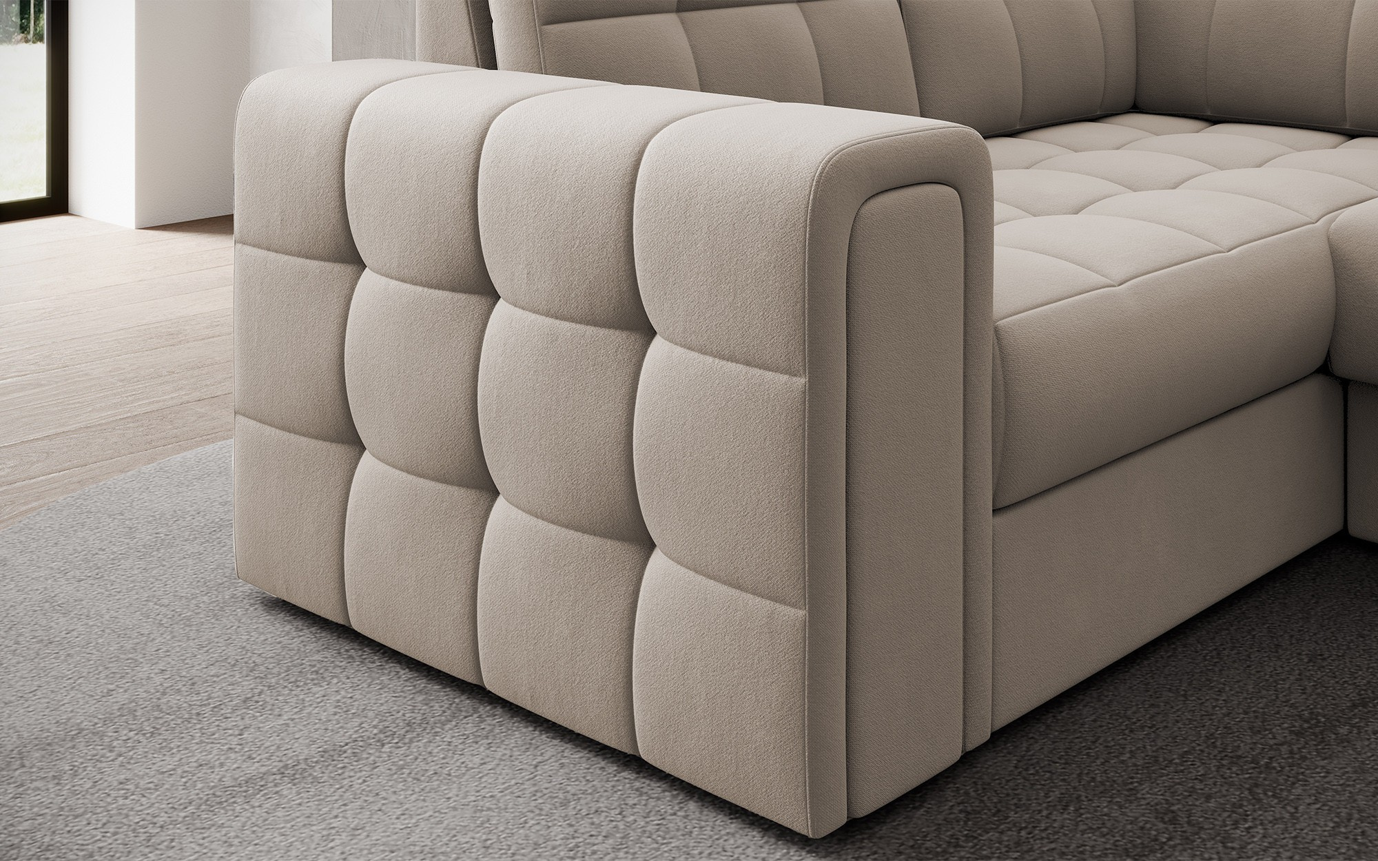 Moderná rohová rozkladacia pohovka Blewett 299x198x82 cm je ideálnou voľbou pre tých, ktorí hľadajú elegantnú a pohodlnú rohovú pohovku do svojej obývačky.Rohová pohovka Blewett vyniká pohodlným sedákom vyrobeným z vlnových pružín typu B a polyuretánových pien T2540 a T2130, čo zaisťuje dlhodobé pohodlie a odolnosť.Operadlo je vyplnené penovou výplňou, ktorá sa dokonale prispôsobí tvaru chrbta, čím zvyšuje komfort relaxácie.Rohová sedacia súprava Blewett v obývacej izbe je vybavená spaciou funkciou typu Dolphin, ktorá umožňuje rýchle rozloženie, a praktickým úložným priestorom na lôžkoviny—ideálna na skladovanie.Táto moderná rohová pohovka Blewett má čalúnené operadlo, vďaka čomu vyzerá skvele v akejkoľvek časti miestnosti.Robustné čierne plastové nohy zdôrazňujú moderný štýl pohovky.Vysoko kvalitné remeselné spracovanie, funkčnosť a módny dizajn robia z Blewettu vynikajúcu rozkladaciu pohovku, ktorá spĺňa očakávania aj tých najnáročnejších používateľov.