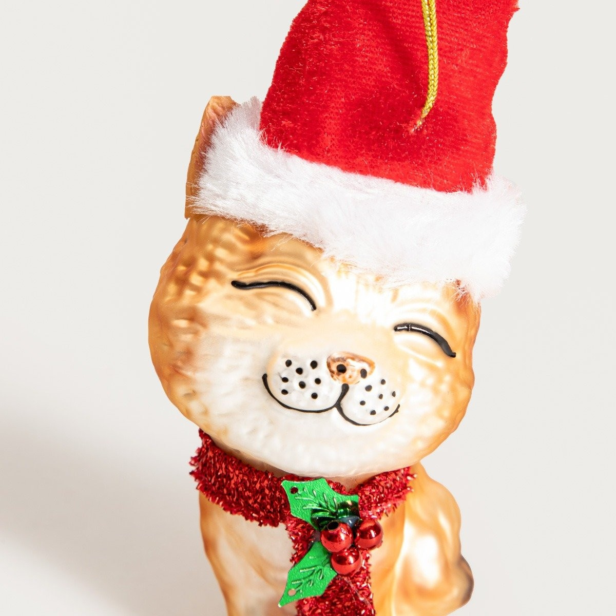 Baňka GLASSO v tvare mačky vo vianočnom klobúku je ideálnou voľbou pre milovníkov zvierat a jedinečných dekorácií.