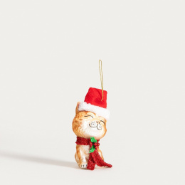 Vianočná mačka vo vianočnom klobúku baňka 11 cm