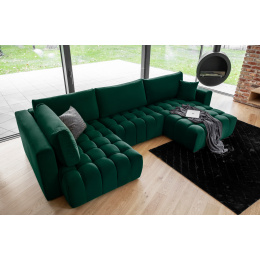 Elegancia a pohodlie uzavreté v jednom kuse nábytku, to je Bonito. Pohodlie a komfort boli dosiahnuté použitím dvoch čalúnnických pien - peny T2540 a mimoriadne pohodlnej vysoko elastickej HR peny. Rohová pohovka Bonito v tvare U má dve otomanové časti, ktoré poskytnú odpočinok aj pre veľkú rodinu. Funkcia spania typu DL, s mechanizmom pre jednoduché rozloženie, sa po rozložení premení na pohodlnú, veľkú posteľ na spanie s rozmermi 300cmx120cm. Ďalšie vankúše je možné uložiť do veľkého úložného priestoru. Bonito je kus nábytku navrhnutý pre väčšie obývacie izby, jeho rozmery sú 340x170x92 cm. Pre rohovú pohovku Bonito sme vybrali špeciálne vybrané látky, ktoré dokonale ladia s nábytkom.