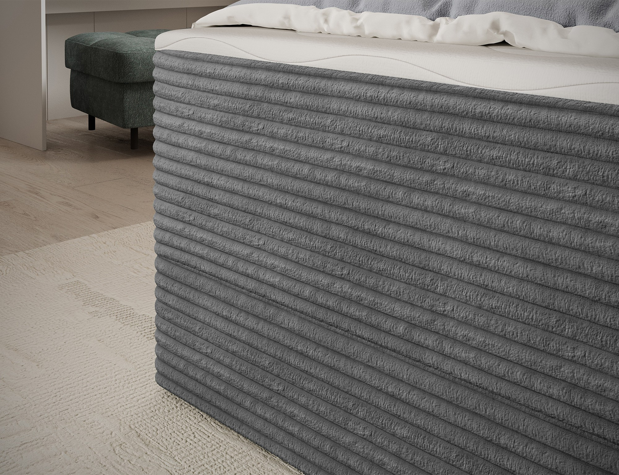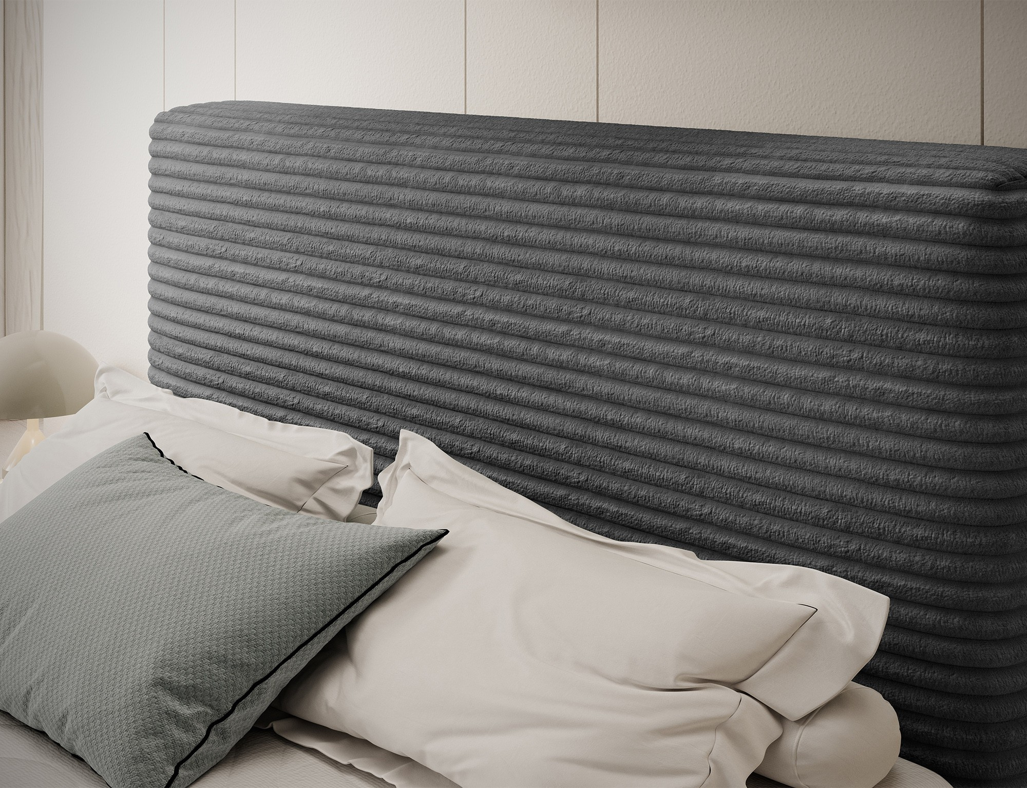 Čalúnenie dodáva posteli ALAMITO elegantný a moderný vzhľad, ktorý sa ľahko hodí do akéhokoľvek interiéru. Opierka je vyrobená z polyuretánovej peny T2130, čo zaisťuje pohodlné opretie pri čítaní alebo sledovaní televízie v posteli.