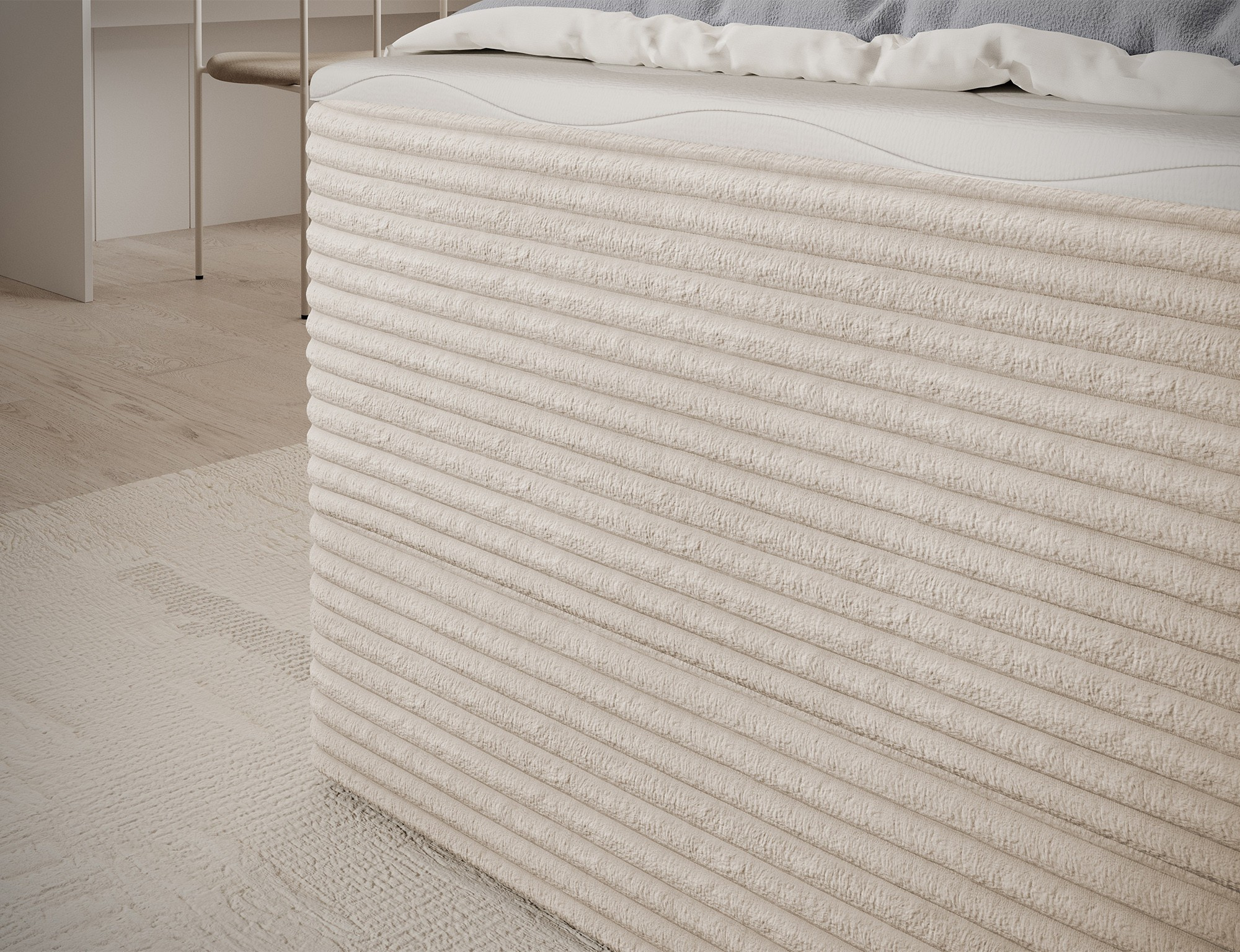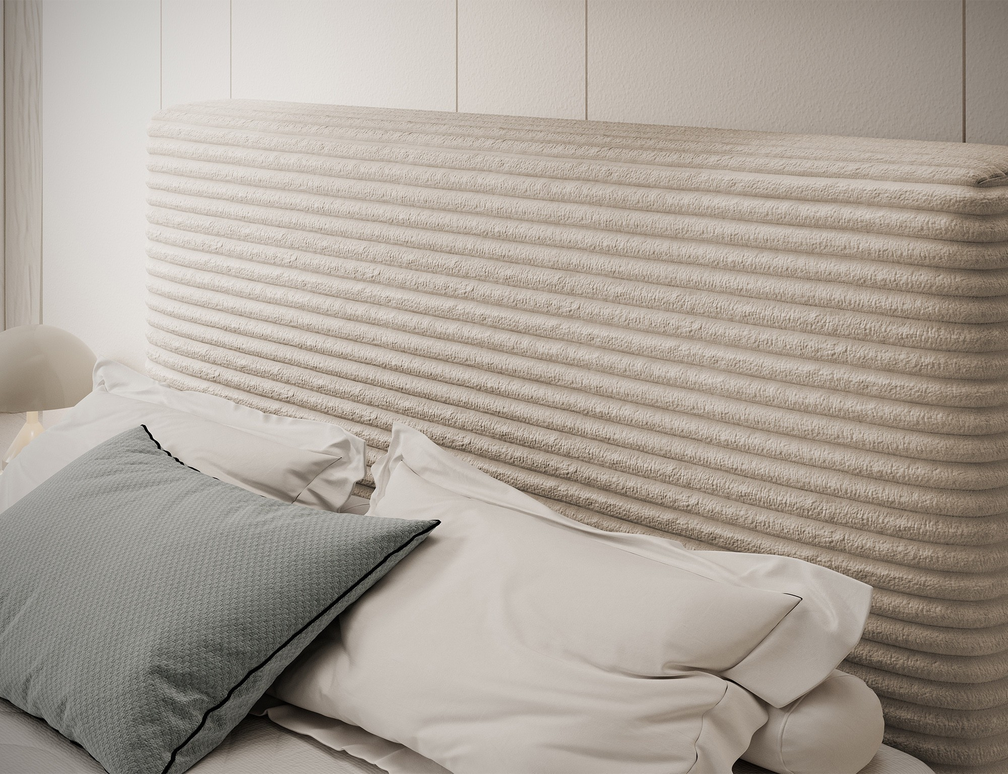 Čalúnenie dodáva posteli ALAMITO elegantný a moderný vzhľad, ktorý sa ľahko hodí do akéhokoľvek interiéru. Opierka je vyrobená z polyuretánovej peny T2130, čo zaisťuje pohodlné opretie pri čítaní alebo sledovaní televízie v posteli.