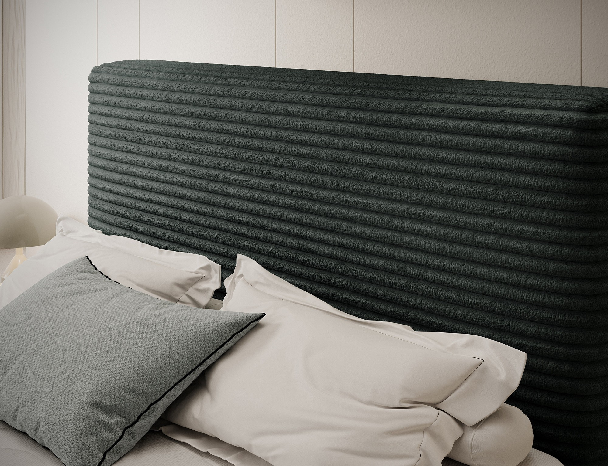 Čalúnenie dodáva posteli ALAMITO elegantný a moderný vzhľad, ktorý sa ľahko hodí do akéhokoľvek interiéru. Opierka je vyrobená z polyuretánovej peny T2130, čo zaisťuje pohodlné opretie pri čítaní alebo sledovaní televízie v posteli.