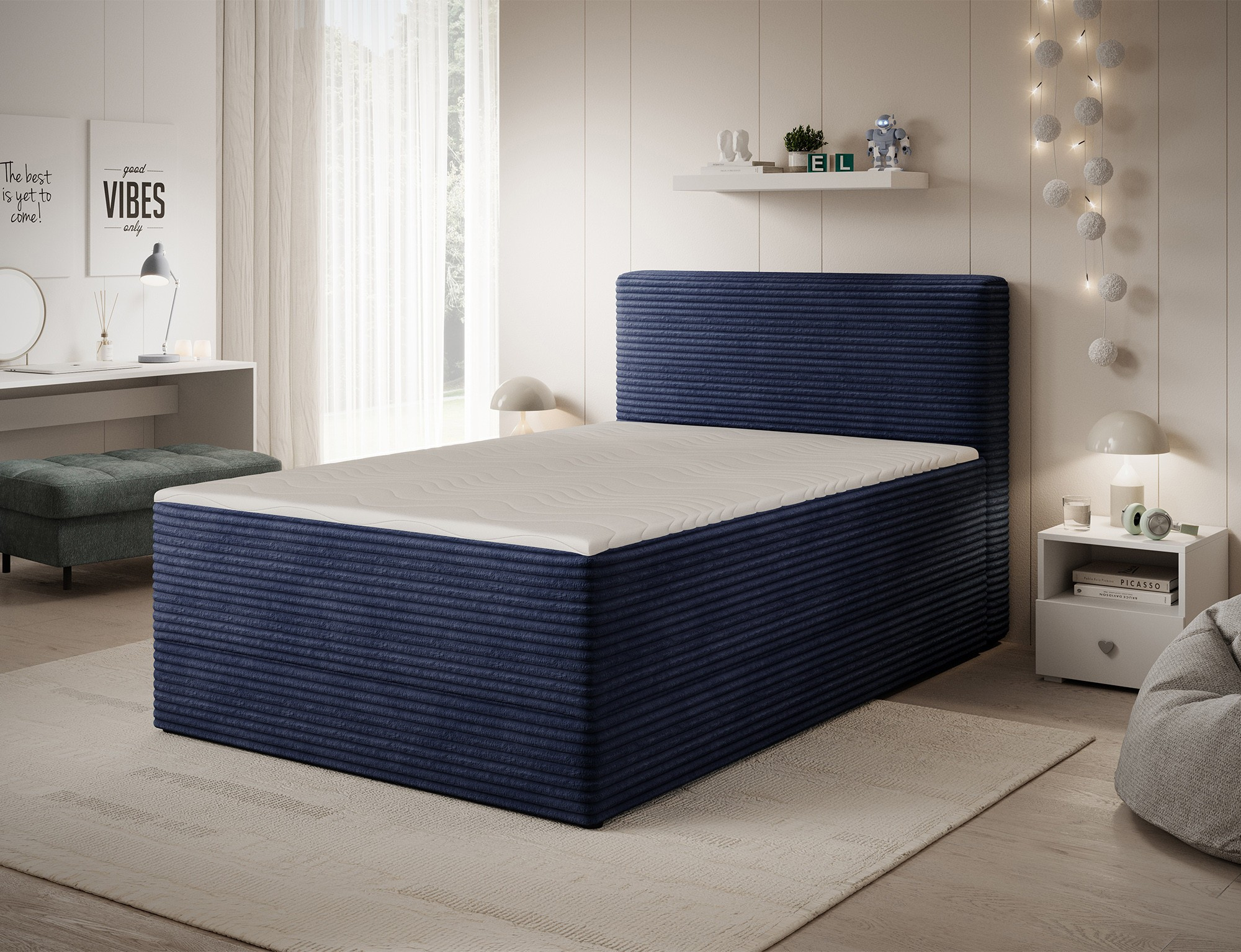 Objavte dokonalú kombináciu elegancie, pohodlia a funkčnosti s našou čalúnenou posteľou boxspring ALAMITO. Táto posteľ je navrhnutá tak, aby splnila všetky vaše potreby pre kvalitný spánok a zároveň sa stala štýlovým doplnkom vašej spálne.