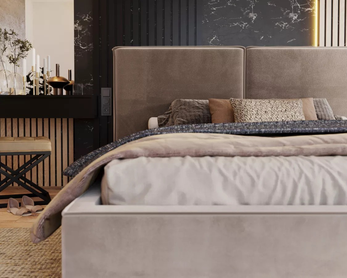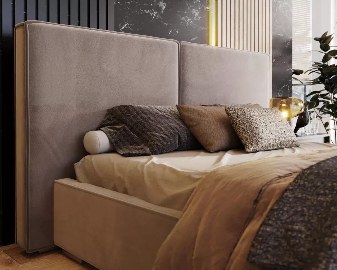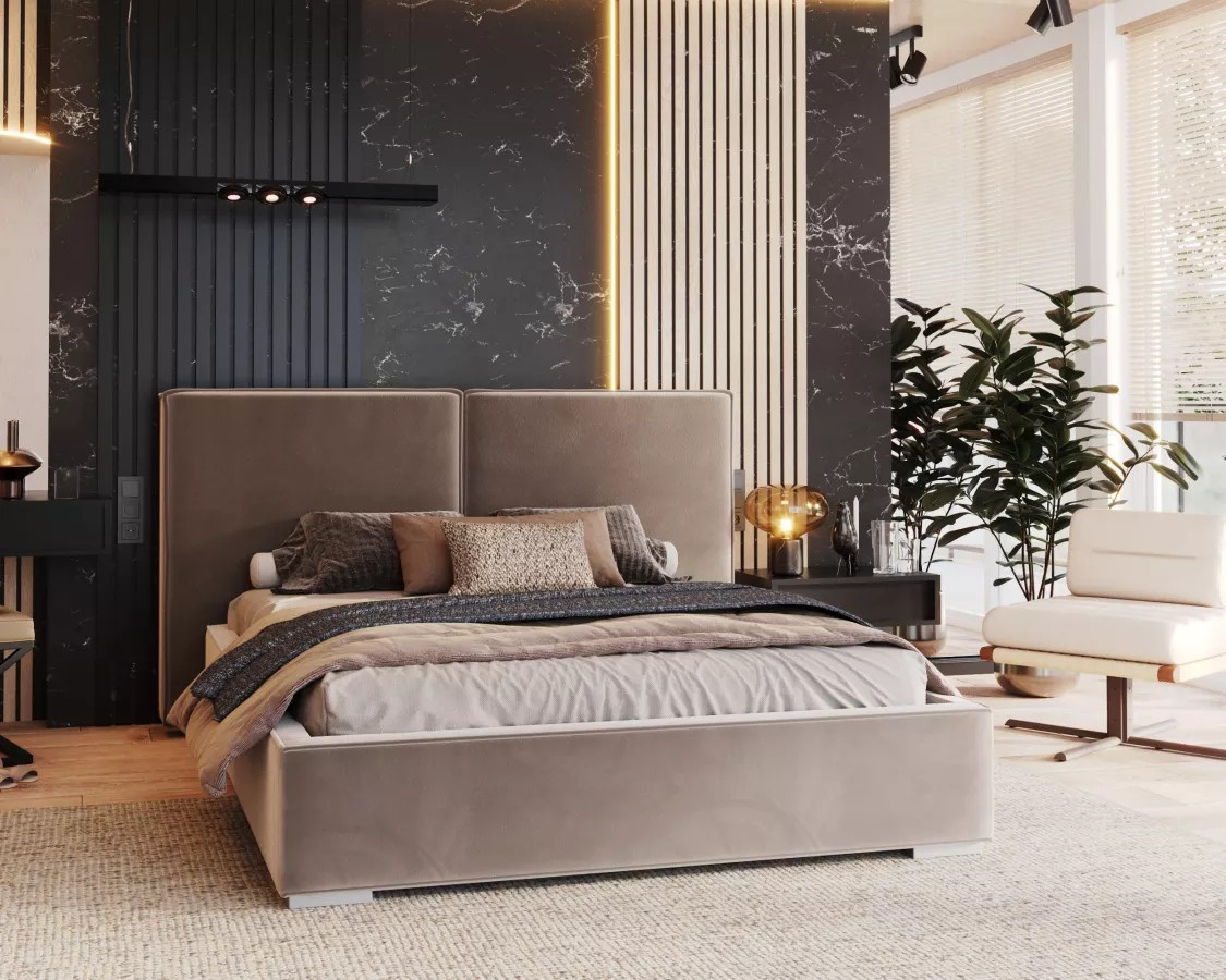 Čalúnená posteľ DOVER Pohodlná a prispôsobená posteľ je zárukou dobre strávenej noci. Ovplyvní to nielen kvalitu spánku, ale aj estetiku spálne a vnímanie miestnosti. Hľadáte originálne riešenie, stojí za to venovať pozornosť čalúnenej posteli DOVER. Model zaujme zaujímavým dizajnom a funkčnými riešeniami.Čalúnená posteľ DOVER sa dokonale hodí do najnovších trendov – skvele sa uplatní v spálňach zariadených v modernom alebo minimalistickom štýle. Pozornosť priťahuje predovšetkým široké čelo postele, ktoré dokonale prilieha k stene a dodáva interiéru neotrelý charakter. Jeho každodenné používanie významne ovplyvní vašu pohodu a spôsobí, že každý deň začne perfektne. Ploché čelo postele DOVER má klasický tvar a jeho minimalizmus narúša viditeľné, módne prešívanie.