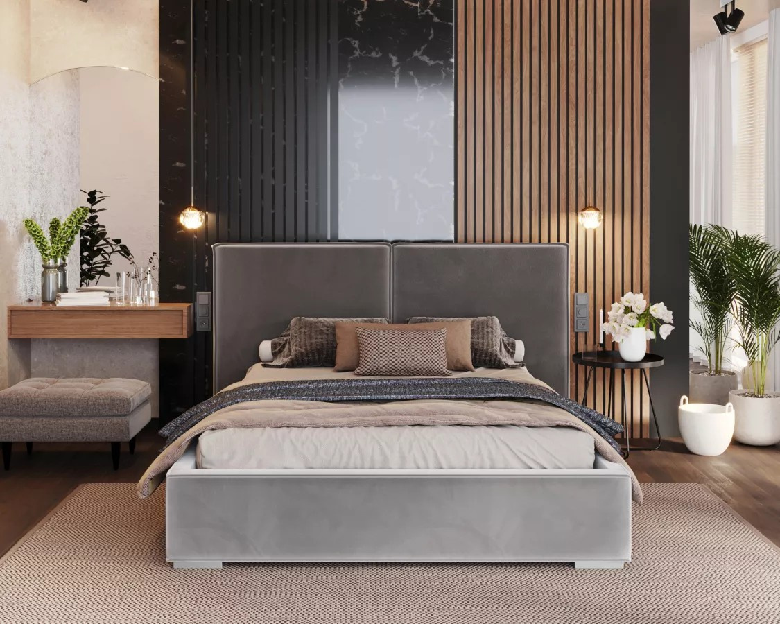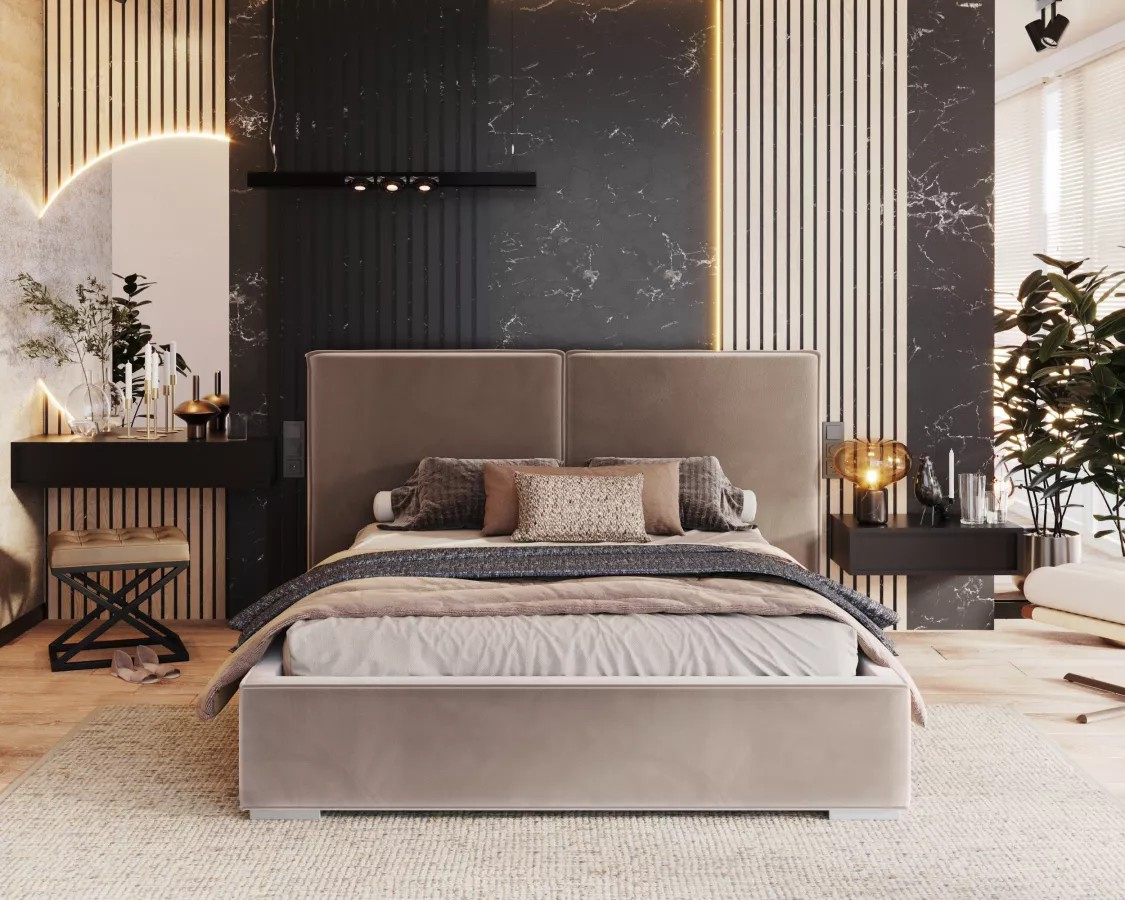 Čalúnená posteľ DOVER Pohodlná a prispôsobená posteľ je zárukou dobre strávenej noci. Ovplyvní to nielen kvalitu spánku, ale aj estetiku spálne a vnímanie miestnosti. Hľadáte originálne riešenie, stojí za to venovať pozornosť čalúnenej posteli DOVER. Model zaujme zaujímavým dizajnom a funkčnými riešeniami.Čalúnená posteľ DOVER sa dokonale hodí do najnovších trendov – skvele sa uplatní v spálňach zariadených v modernom alebo minimalistickom štýle. Pozornosť priťahuje predovšetkým široké čelo postele, ktoré dokonale prilieha k stene a dodáva interiéru neotrelý charakter. Jeho každodenné používanie významne ovplyvní vašu pohodu a spôsobí, že každý deň začne perfektne. Ploché čelo postele DOVER má klasický tvar a jeho minimalizmus narúša viditeľné, módne prešívanie.