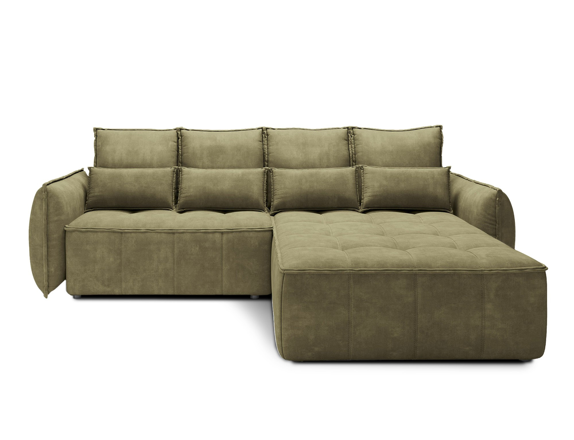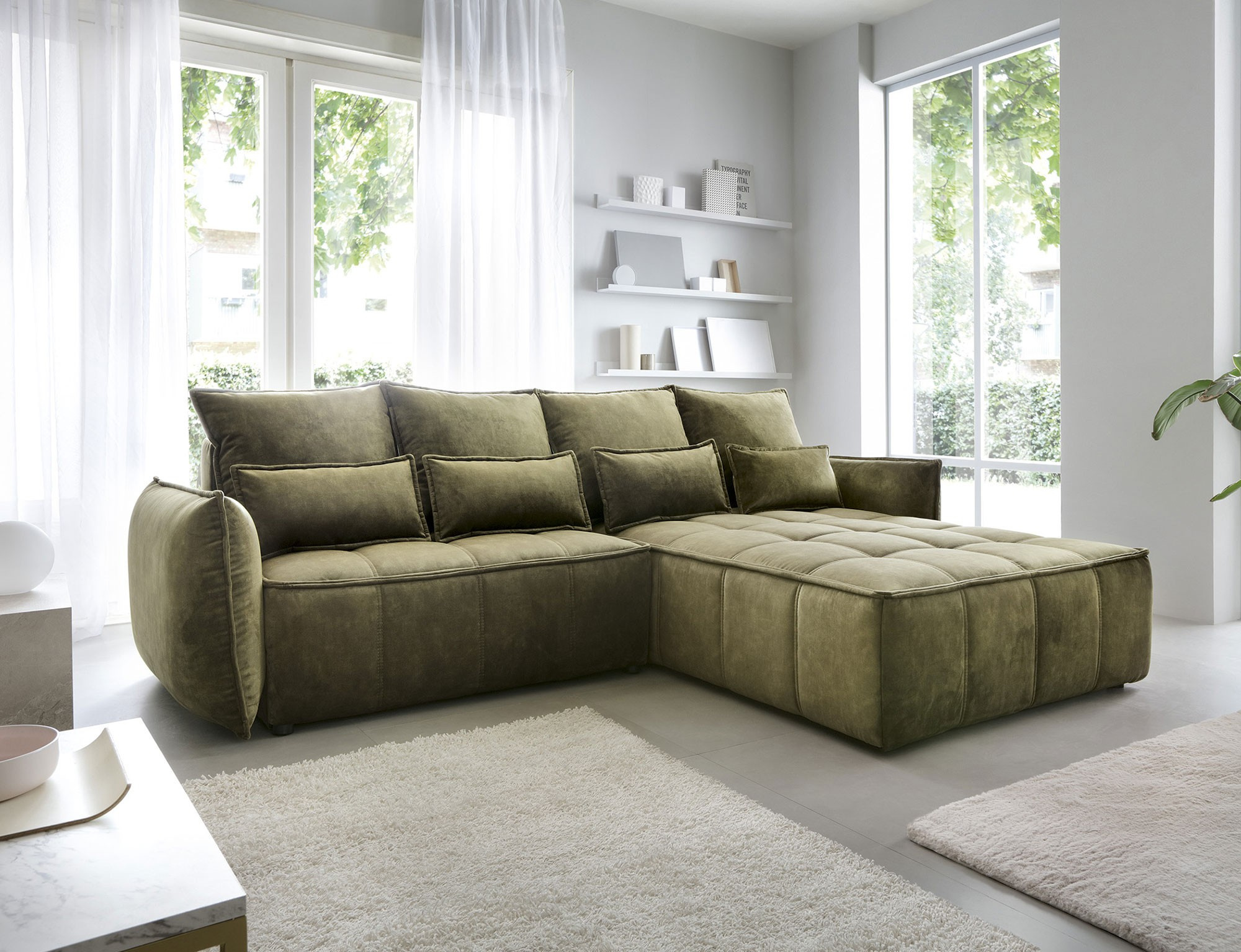 Rohová pohovka Campo, merajúca 265x196x88 cm, je elegantný a funkčný kus nábytku s úložným priestorom na posteľnú bielizeň (97x60x15 cm). Vybavené 4 vankúšmi na operadlo a 4 bedrovými vankúšmi, poskytuje pohodlie a oporu pre chrbát. Produkt je dostupný iba vo vybraných látkach z kolekcie ELTAP. Rohová pohovka Campo je vynikajúcou voľbou pre tých, ktorí si cenia pohodlie, funkčnosť a elegantný dizajn. Vďaka svojmu premyslenému dizajnu a ďalším vankúšom ponúka pohodlné miesto na odpočinok a úložný priestor pomáha udržiavať veci usporiadané. Možnosť výberu z vybraných látok umožňuje vytvoriť kus nábytku, ktorý dokonale dopĺňa zvyšok interiéru.