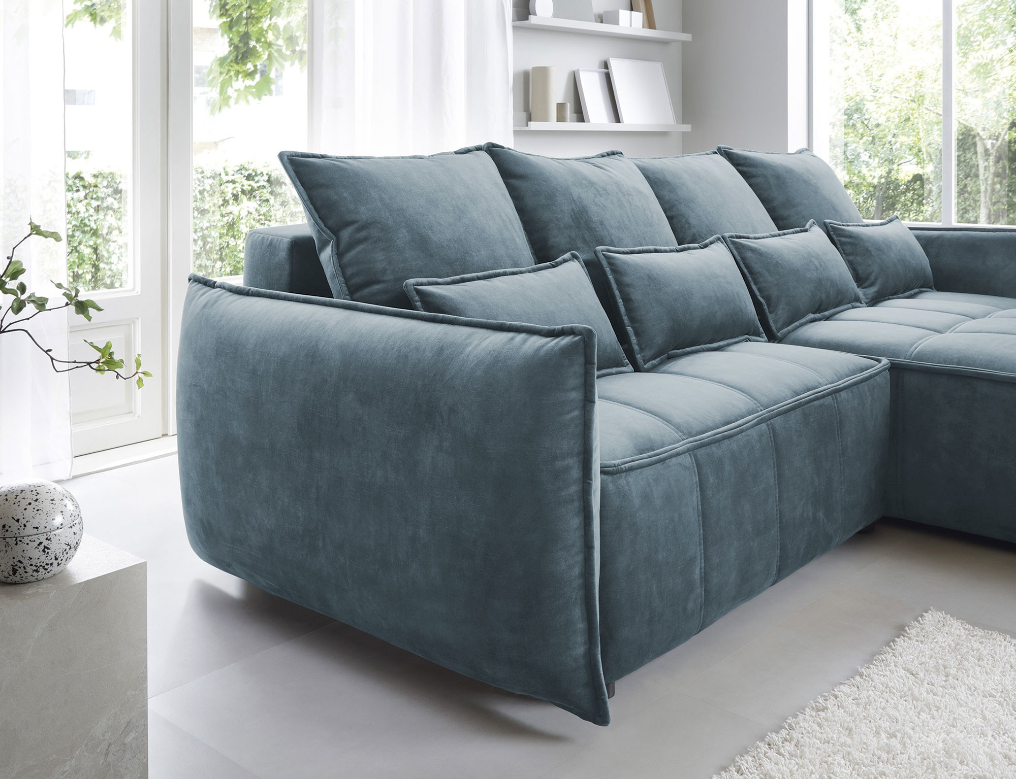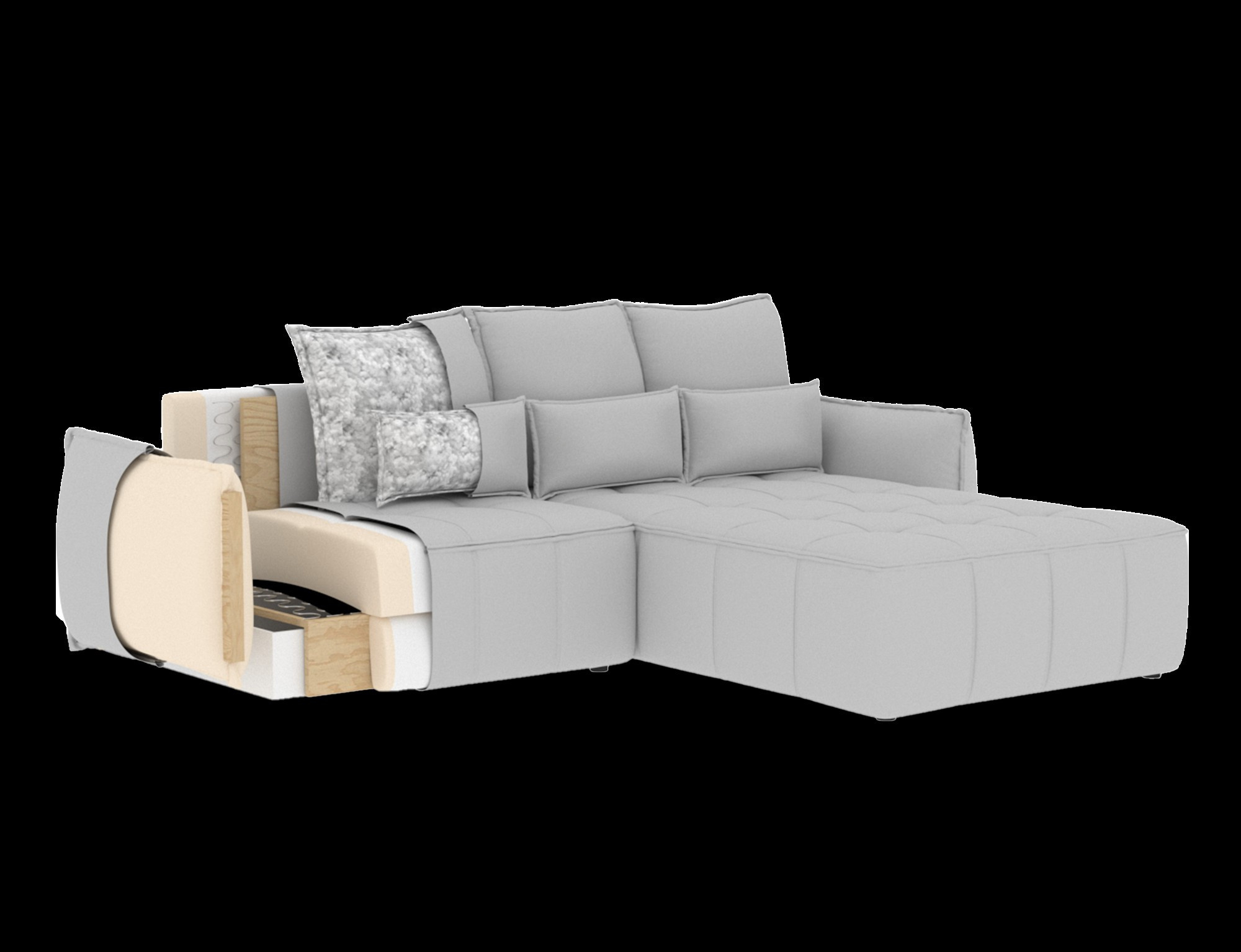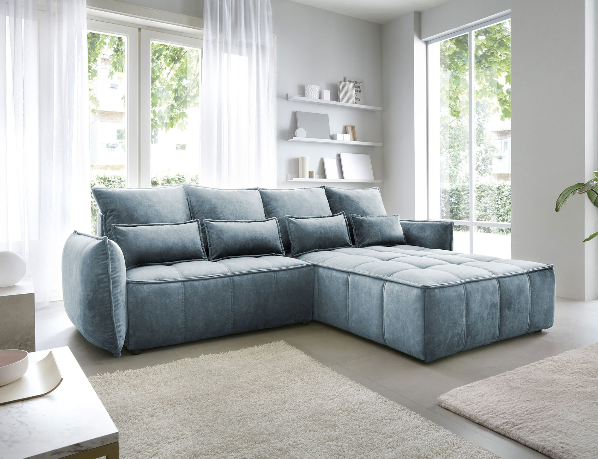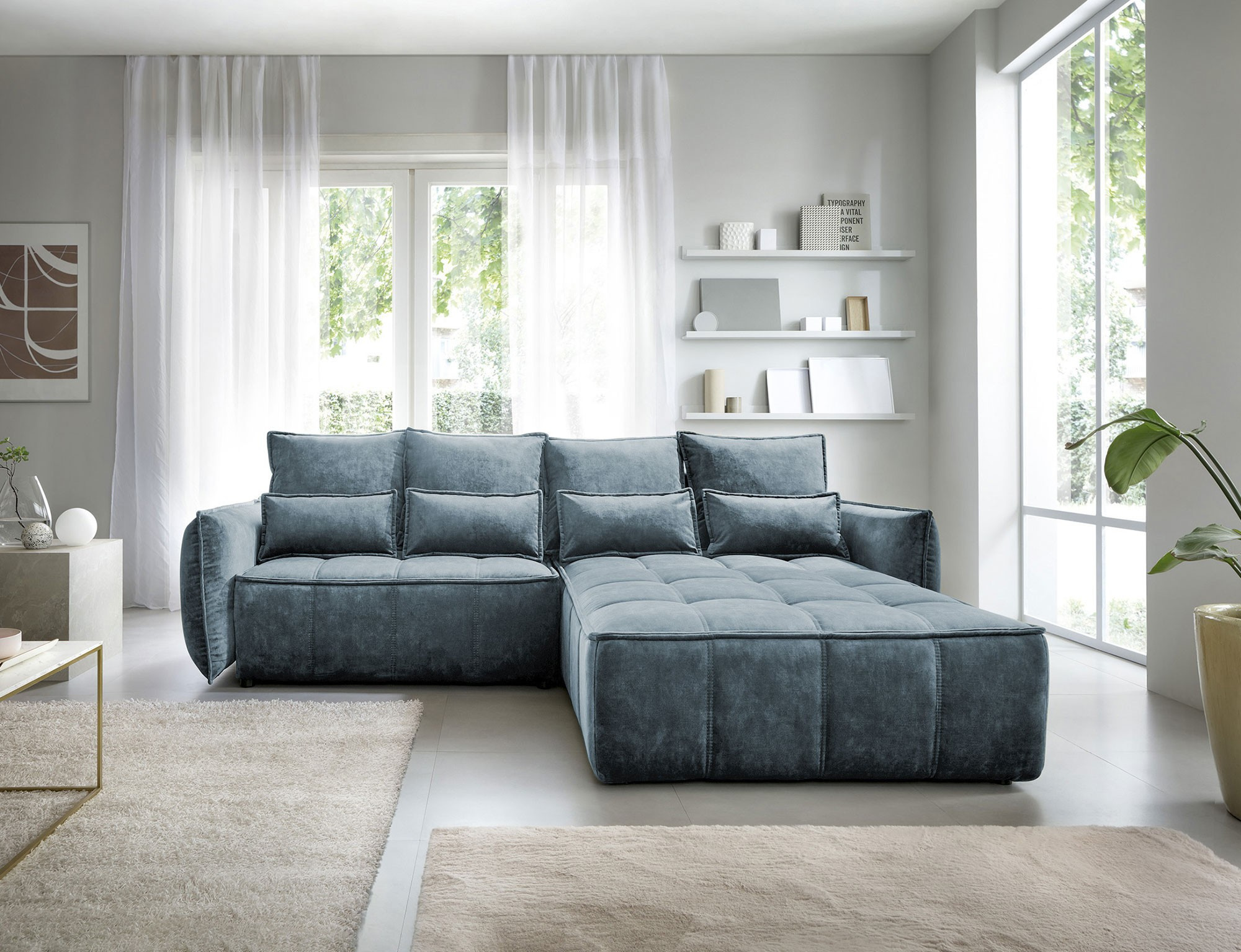 Rohová pohovka Campo, merajúca 265x196x88 cm, je elegantný a funkčný kus nábytku s úložným priestorom na posteľnú bielizeň (97x60x15 cm). Vybavené 4 vankúšmi na operadlo a 4 bedrovými vankúšmi, poskytuje pohodlie a oporu pre chrbát. Produkt je dostupný iba vo vybraných látkach z kolekcie ELTAP. Rohová pohovka Campo je vynikajúcou voľbou pre tých, ktorí si cenia pohodlie, funkčnosť a elegantný dizajn. Vďaka svojmu premyslenému dizajnu a ďalším vankúšom ponúka pohodlné miesto na odpočinok a úložný priestor pomáha udržiavať veci usporiadané. Možnosť výberu z vybraných látok umožňuje vytvoriť kus nábytku, ktorý dokonale dopĺňa zvyšok interiéru.