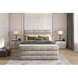 Cande je pohodlná a moderná posteľ, ktorá vyniká svojím minimalistickým a pôvabným, nevídaným dizajnom. Okrem iného je vzhľad Cande ovplyvnený vysokým, ozdobne prešívaným čelom postele a prednou časťou postele, ktorá zachytáva skutočný vizuálny efekt mäkkej peny. Priestranná posteľ so spacou plochou: 140/160/180 x 200 cm je ideálnym miestom na spánok aj odpočinok kedykoľvek inokedy. Medzi ďalšie výhody tohto modelu môžeme zahrnúť pevnú matrac s pružinami typu bolen a topper. Funkčnosť nábytku sa prejavuje vybavením dvoma úložnými priestormi na posteľnú bielizeň. Cande je moderný klasický štýl, ktorý sa stretáva s moderným pohľadom na interiérový dizajn jedinečnej spálne. Stojí za to mať posteľ, ktorá vo svojej relatívnej jednoduchosti umožňuje sprostredkovať atmosféru pohodlia a luxusu na najvyššej úrovni.