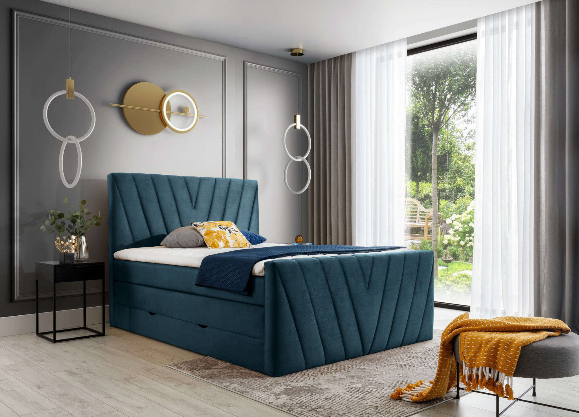 Kontinentálna posteľ Candice prináša do spálne odvahu vďaka čalúneniu, ktoré je k dispozícii v mnohých rôznych farbách z kolekcie látok ELTAP. Okrem toho je produkt dostupný v 3 veľkostiach spacie plochy: 140/160/180x200 centimetrov. Boxspring Candice bude určite atraktívnym základom pre mnoho spální, pretože je štýlová a pohodlná. Čalúnené operadlo tohto kusu nábytku umožňuje jeho umiestnenie v rôznych konfiguráciách, dokonca aj uprostred miestnosti. Ďalšou výhodou našej čalúnenej postele sú mimoriadne pohodlné matrace zahrnuté v sade.Ako boxspringová posteľ je Candice vybavená spodným matracom a horným matracom. Prvý je vyplnený penou T25 a pružinami Bonnel. Tvrdosť spodného matraca je H2/3, zatiaľ čo tvrdosť horného matraca je H3. Navyše je topper tejto čalúnenej postele obojstranný a vybavený zipsom. To určite uľahčí udržiavanie matraca v čistote. Vďaka všetkým týmto prvkom je kontinentálna posteľ Candice neuveriteľne pohodlná a vyzerá krásne v každom interiéri.