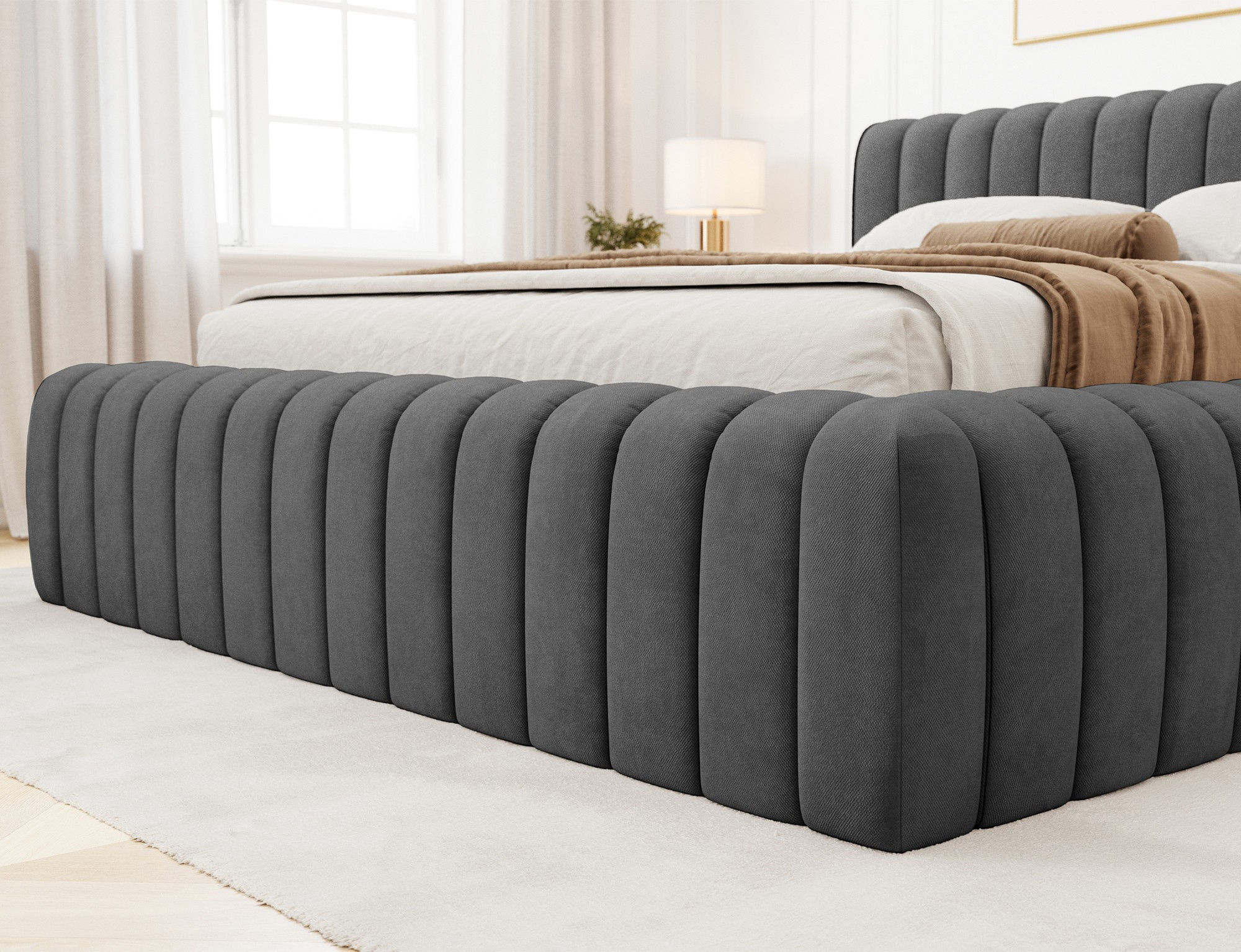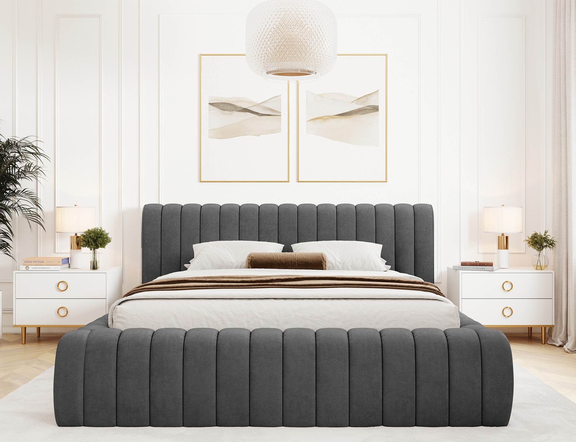 Posteľ Carilla je moderný a elegantný kus nábytku dostupný v troch veľkostiach: 140x200 cm, 160x200 cm a 180x200 cm, ktorý dokonale ladí so súčasnými trendmi v interiéri. Jeho pohodlie je zabezpečené vysoko kvalitnou polyuretánovou penou vo výplni rámu a operadla—T2130 a T2315—ktorá poskytuje ako odolnosť, tak útulnosť. Jeho robustná konštrukcia je podporená kovovým rámom s 36 lamelami, čo zaisťuje vynikajúcu oporu matraca a pokojný spánok. Dizajn je dokončený čiernym klzákom, ktorý zvyšuje stabilitu aj estetiku.