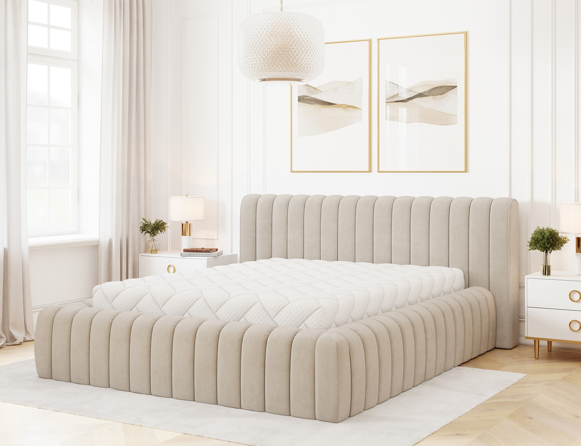 Posteľ Carilla je moderný a elegantný kus nábytku dostupný v troch veľkostiach: 140x200 cm, 160x200 cm a 180x200 cm, ktorý dokonale ladí so súčasnými trendmi v interiéri. Jeho pohodlie je zabezpečené vysoko kvalitnou polyuretánovou penou vo výplni rámu a operadla—T2130 a T2315—ktorá poskytuje ako odolnosť, tak útulnosť. Jeho robustná konštrukcia je podporená kovovým rámom s 36 lamelami, čo zaisťuje vynikajúcu oporu matraca a pokojný spánok. Dizajn je dokončený čiernym klzákom, ktorý zvyšuje stabilitu aj estetiku.