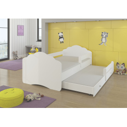 Dvojlôžko z kolekcie CASIMO II s jednoduchým tvarom má zásuvku s funkciou spania, ktorá sa skvele hodí do izby pre dvoch súrodencov. Je tiež ideálnym riešením pre návštevu nečakaných hostí. Vďaka veľkému výberu grafík ľahko vyberieš model, ktorý najlepšie zodpovedá záujmom tvojho dieťaťa. V procese výroby boli použité ekologické vodné farby, ktoré sú bezpečné a odolné voči mechanickému poškodeniu. Navyše posteľ nemá ostré rohy a grafika je chránená laminátom. Ďalšou výhodou je ochranná zábrana zabezpečujúca bezpečnosť počas spánku a snímateľný poťah matraca na zips, ktorý možno ľahko zložiť a oprať.