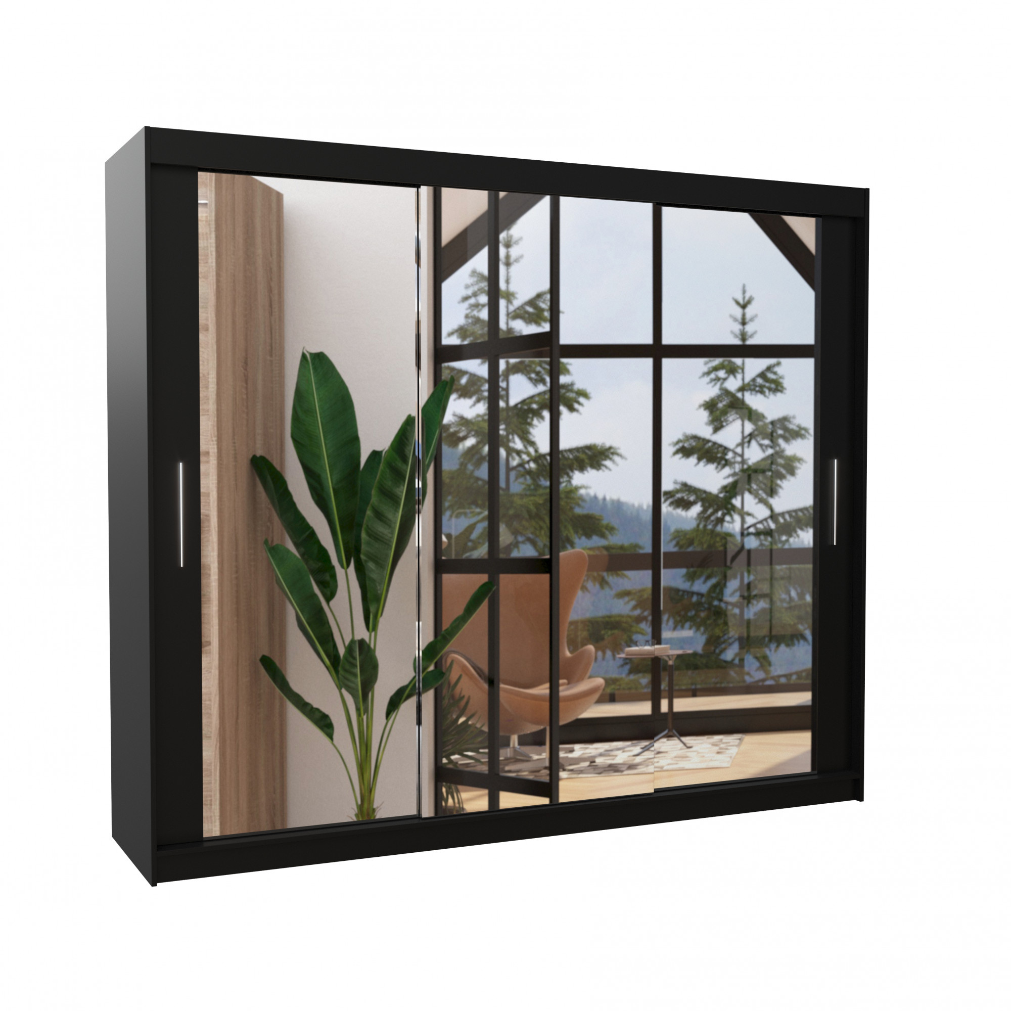 Posuvná skriňa so zrkadlom CHESTER 250 Čierna+Čierna