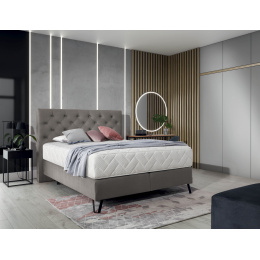Kontinentálna posteľ Cortina doplní dekor spálne v nenápadnom, minimalistickom štýle. Jedná sa o kus nábytku postavený s pevným boxspringom, čiernymi kovovými nohami a ozdobným čelom. Boxspring Cortina je k dispozícii v 3 variantoch spacieho povrchu na výber: 140x200 cm, 160x200 cm, 180x200 cm. Vyplnenie opierky hlavy penou poskytuje dodatočnú mäkkú oporu pre hlavu. Okrem toho je opierka hlavy zdobená prešívaním a šitím - spolu tvoria desiatky kosoštvorcov, čo pridáva na kúzle nábytku. Dôležitou súčasťou každej postele je tiež matrac, a v tomto prípade zahŕňame super pohodlný matrac. Boxspring Cortina je dodávaný s taštičkovým matracom, čo je produkt s taštičkovými pružinami, ktoré zvyšujú úroveň pohodlia pri odpočinku. Okrem výhod spojených s pohodlným matracom nezabudnite, že si môžete tiež vybrať farbu a textúru čalúnnickej látky z našej rozsiahlej kolekcie ELTAP.