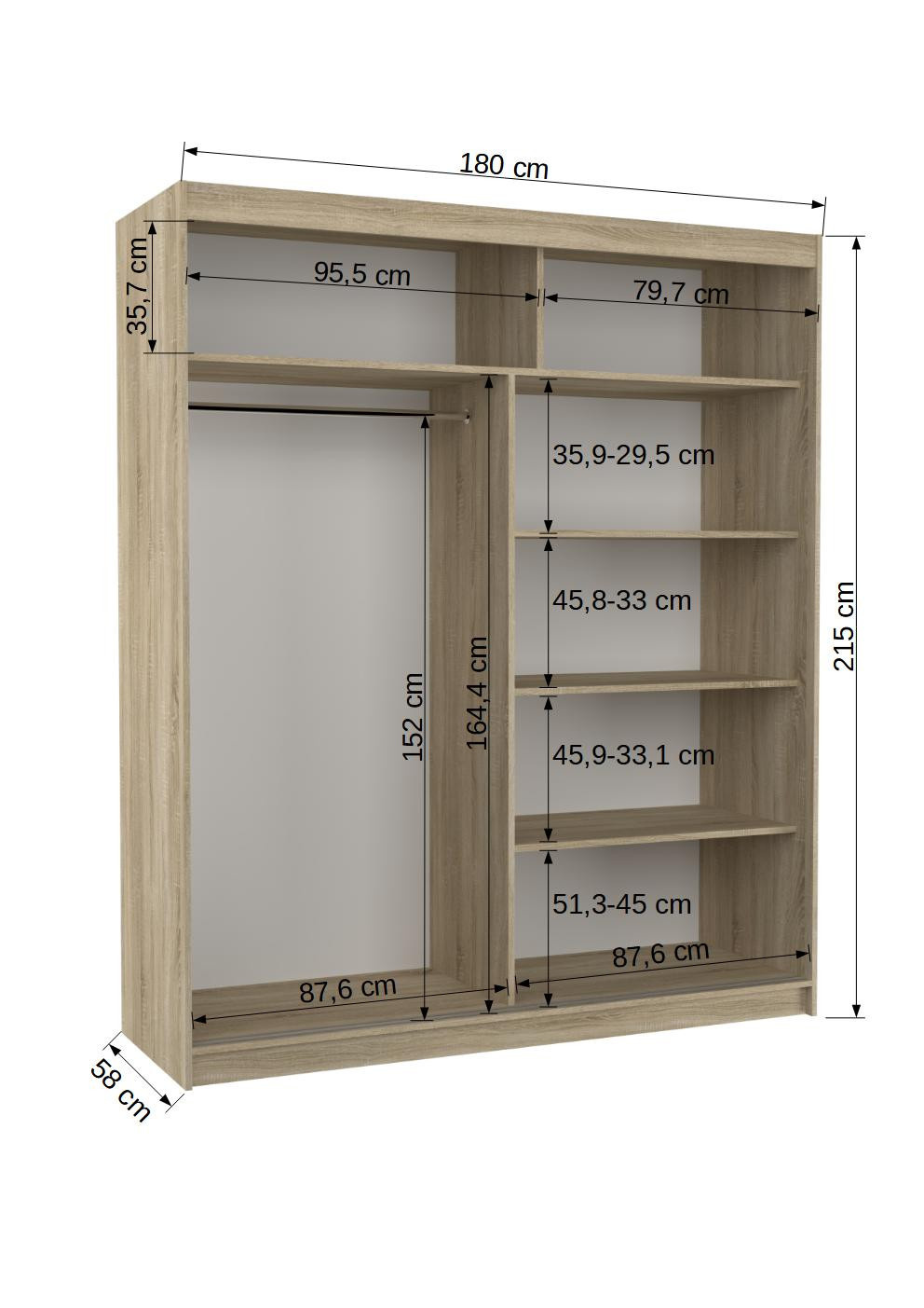 Posuvná skriňa so zrkadlom DALLAS 180 Sonoma+Sonoma