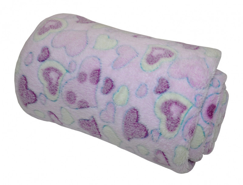 Deka z mikroplyšu 150x200 cm - fialové srdce