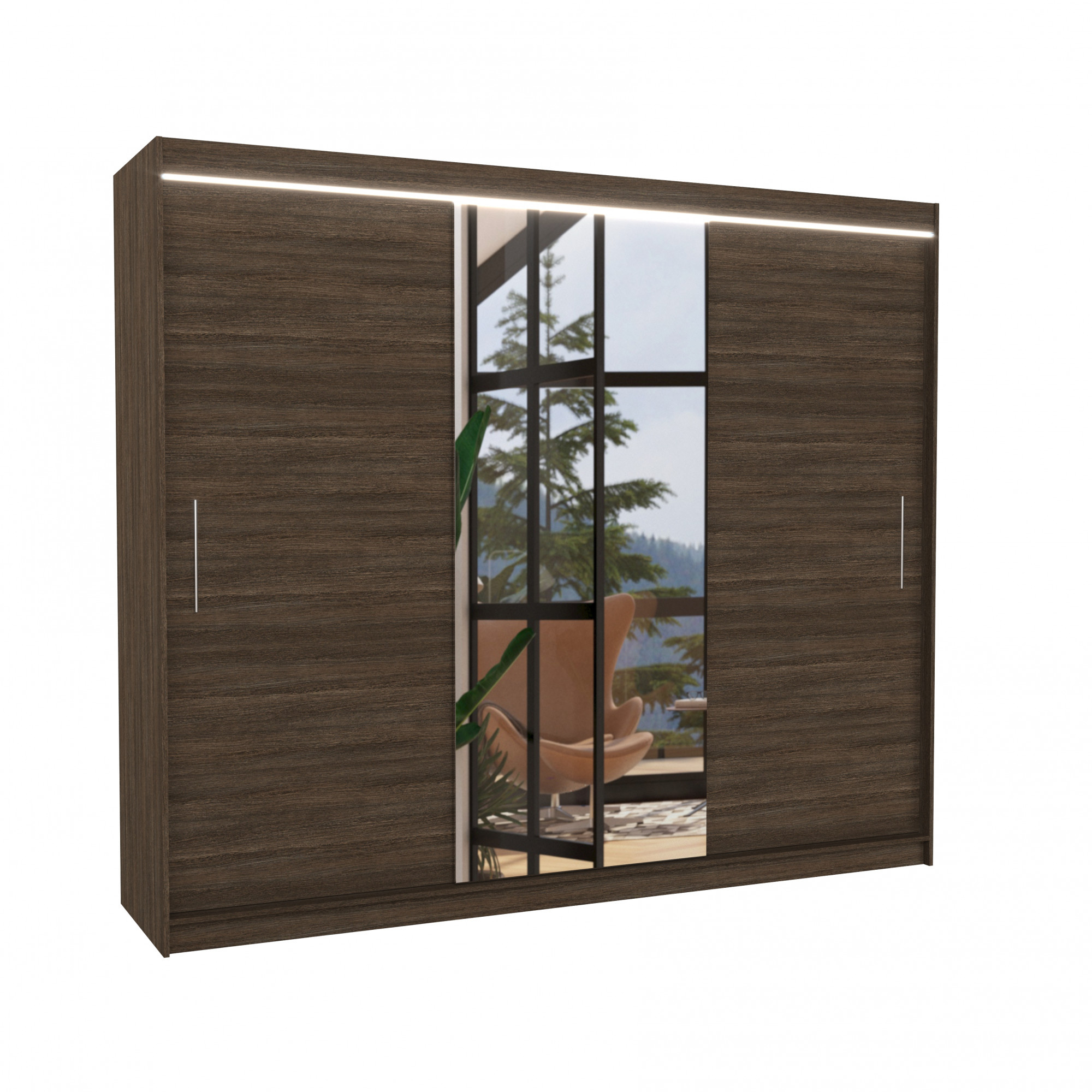 Posuvná skriňa so zrkadlom a LED osvetlením DENIS 250 Choco+Choco