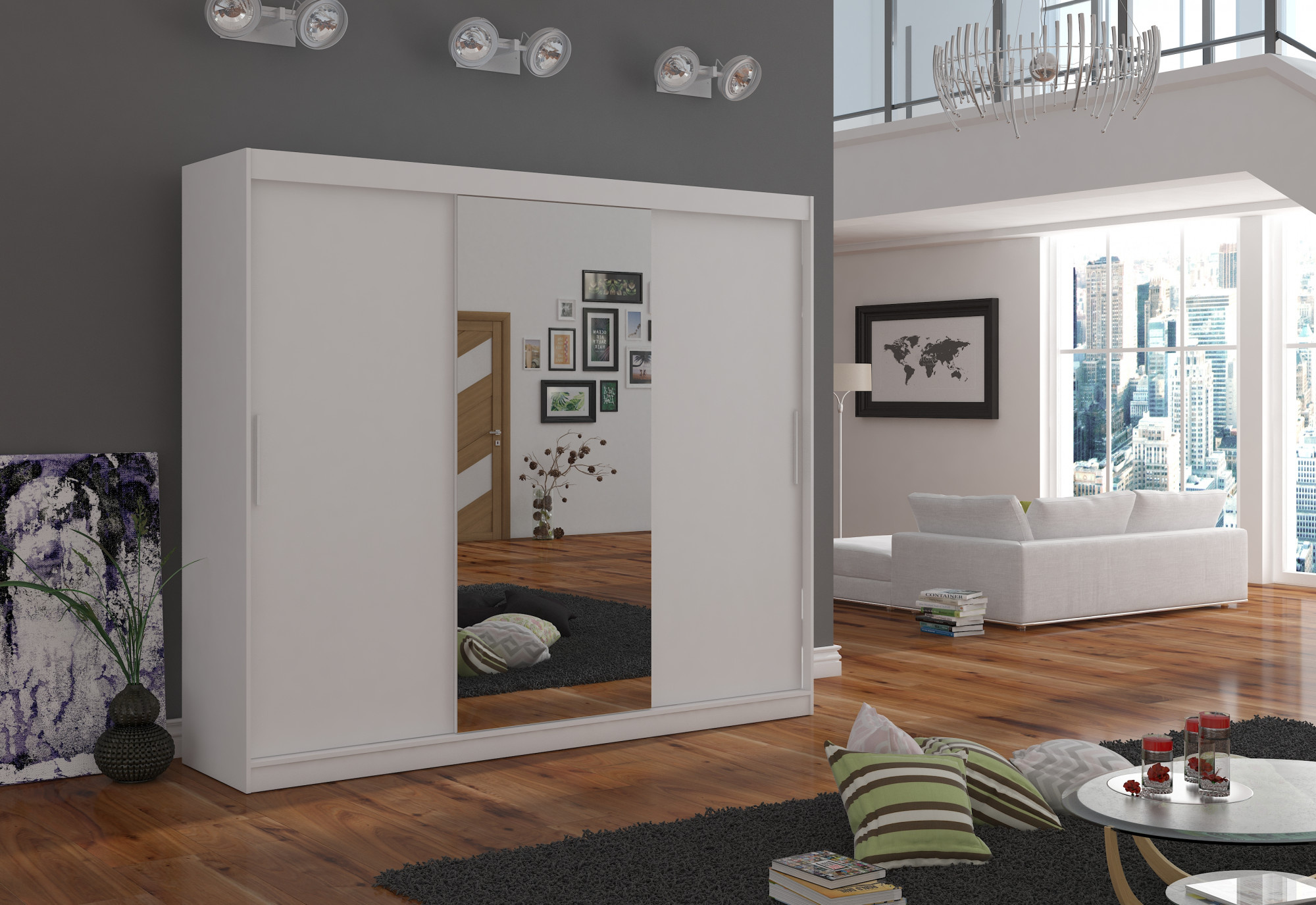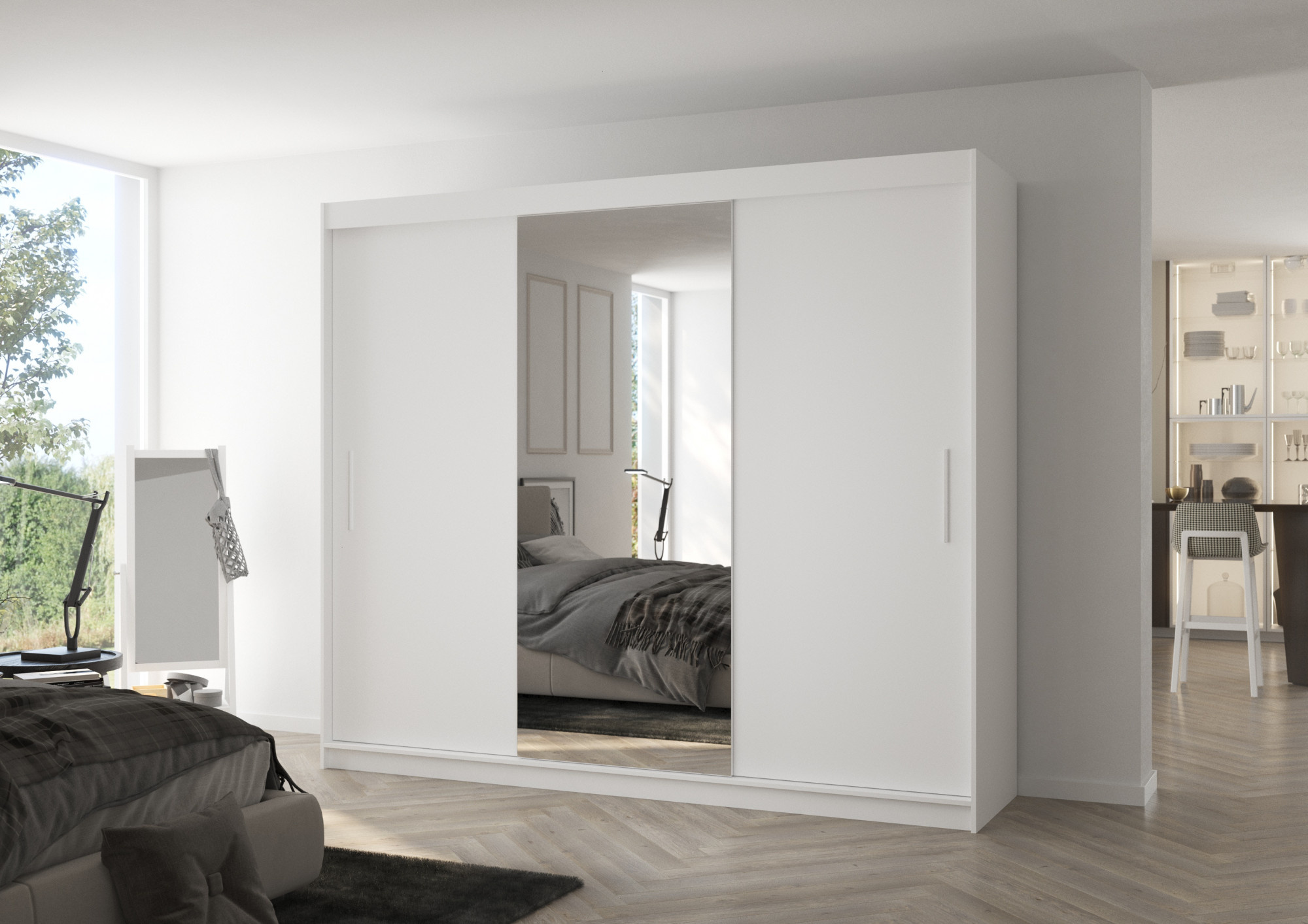 Posuvná skriňa so zrkadlom DENIS 250 Biela+Biela